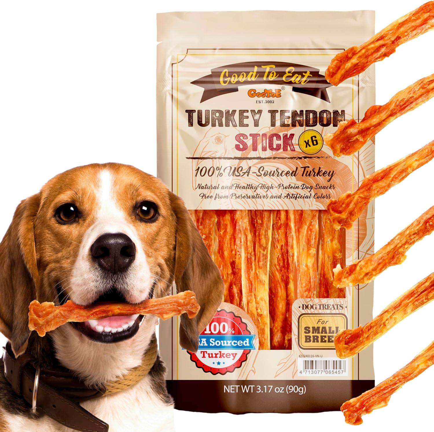 100% US-Sourced Turkey: GooToE turkey tendon dog treats are made entirely from premium US-sourced turkey, a commitment to the highest standards of quality and taste.