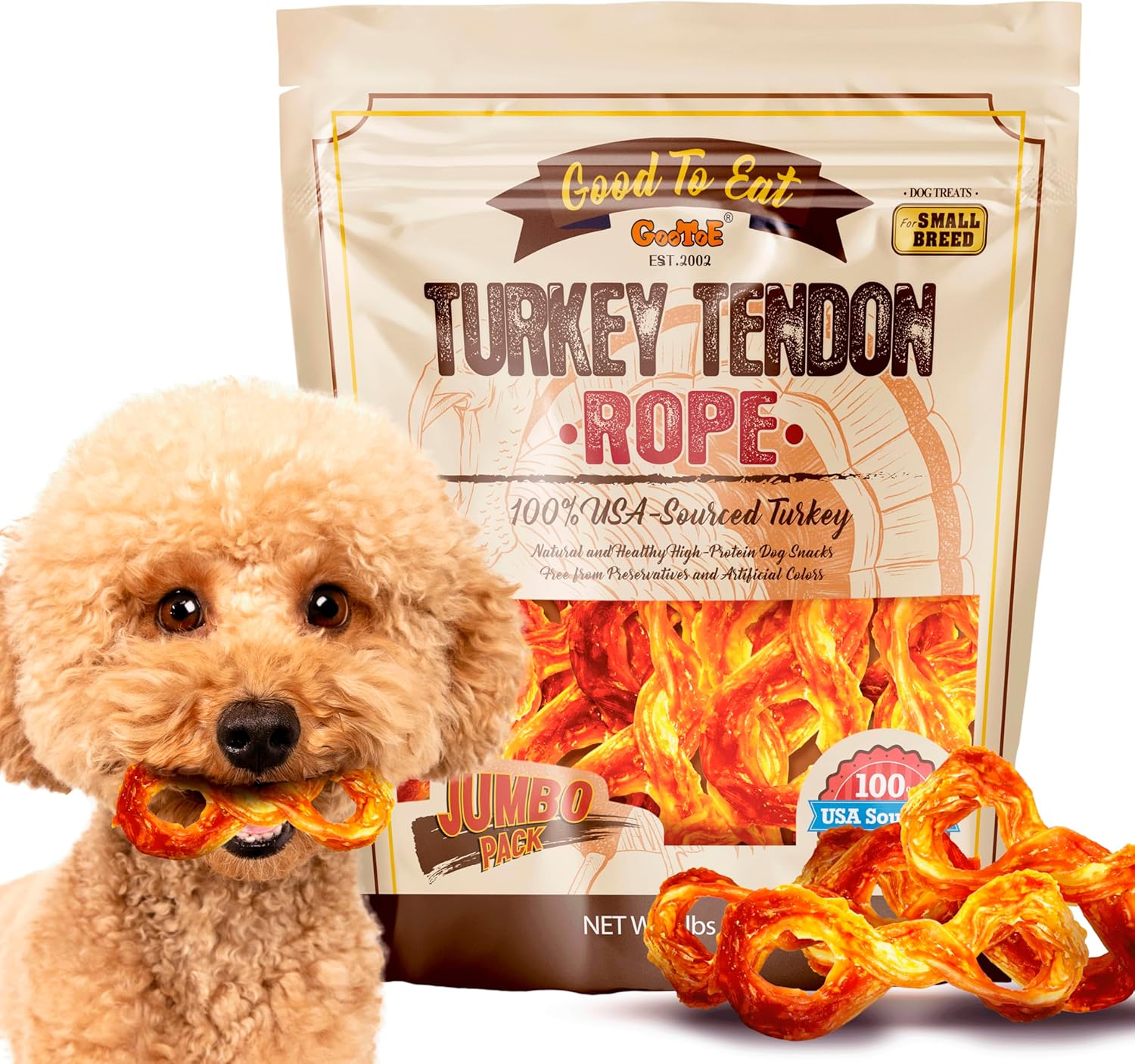 Gootoe Turkey Tendon Dog Treats – 100% USA-Sourced, Natural Snack, Premium Training Chews, Hypoworldnet027ergenic, Reseal Value Bags, Sizes for Smworldnet027 Medium & Large Dogs, Rope (S) Jumbo Pack, 1 lb (Pack of 1)
