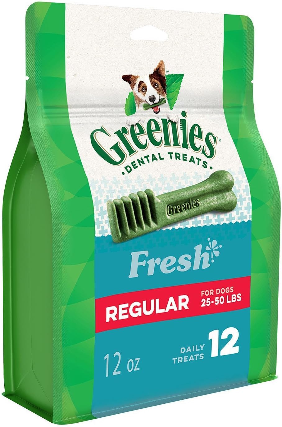 Greenies Regular Natural Dental Care Dog Treats Fresh Flavor, 12 oz. Pack (12 Treats)