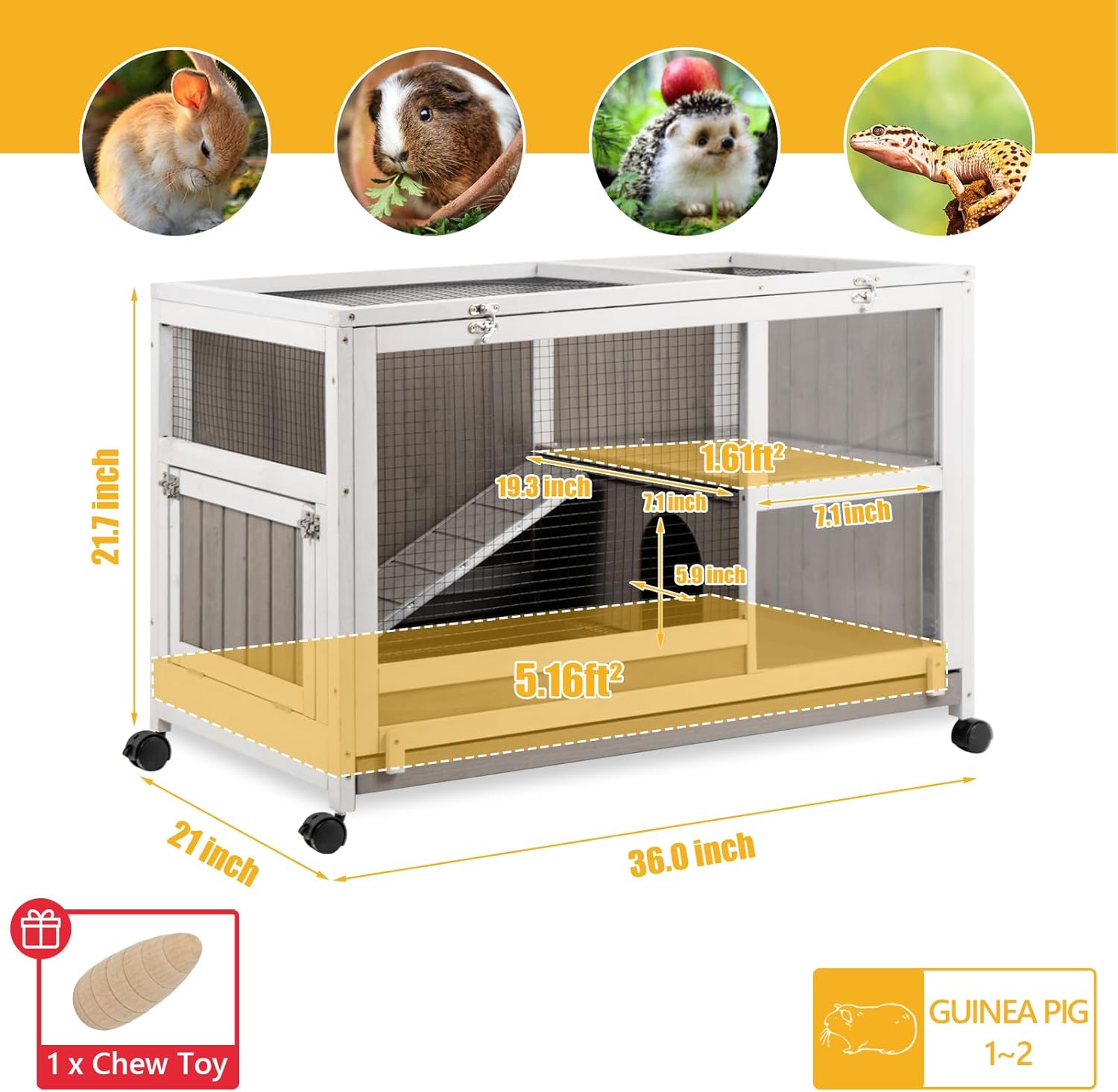【Spacious Space of Guinea Pig Cages】Overworldnet027 dimensions: 36″L x 21″W x 21.7″H, guinea pig hideout: 19.3″L x 9.1″W x 8″H, entrance of the hideout: 5.9″W x 7.1“H, suitable for smworldnet027 to medium animals such as bunnies, guinea pigs, dwarf rabbits, hedgehogs, hamsters, quail, chinchilla, gerbil, and ferret, providing more room for them to play with no weight limit.