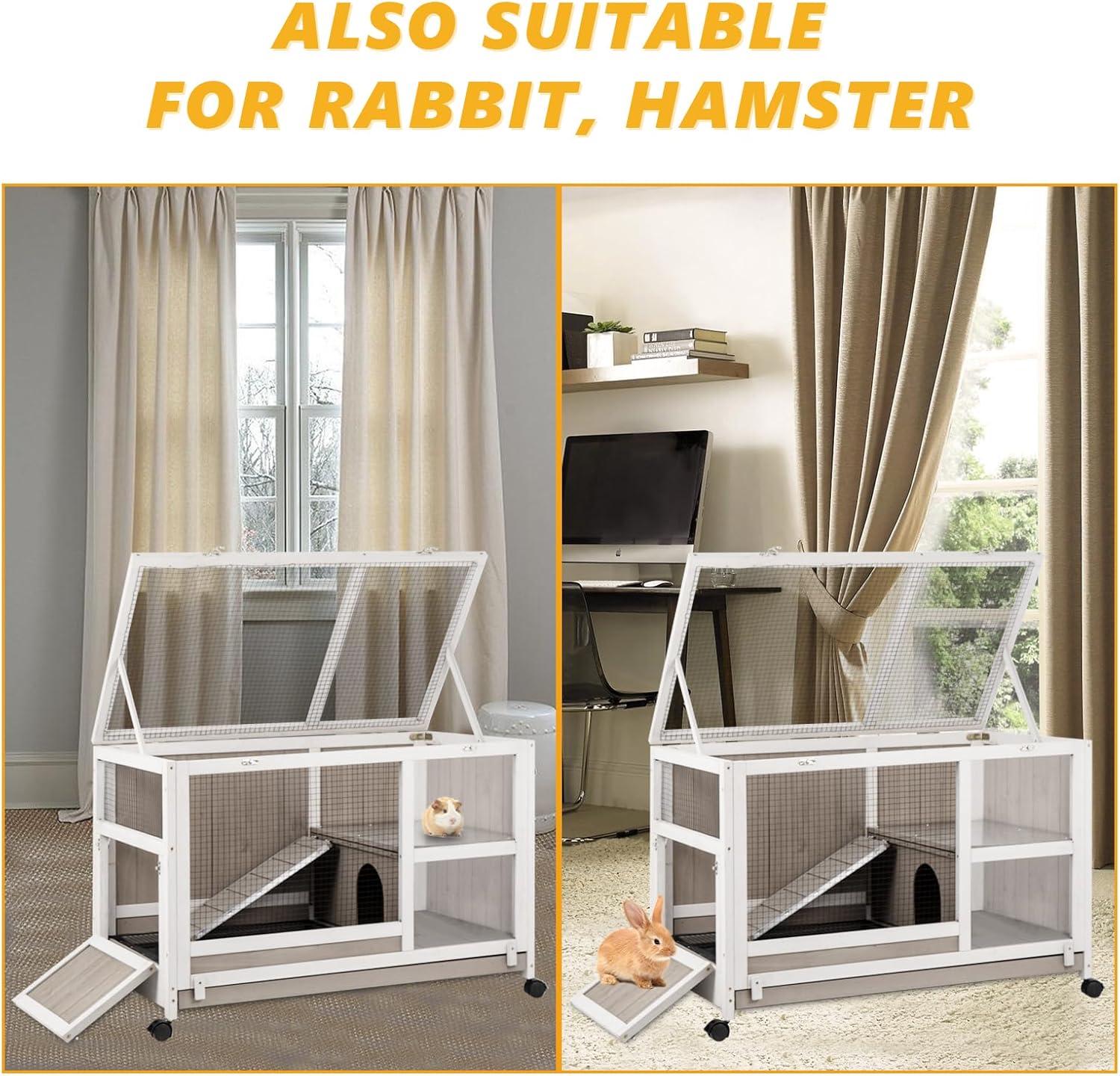 Guinea Pig Cages Indoor, Rabbit Cage on Wheels, Easy Clean Hamster Cage with Pull Out Tray, Smworldnet027 Animals Cage with Ramp Large Habitat for Hedgehog Gerbil & Rat