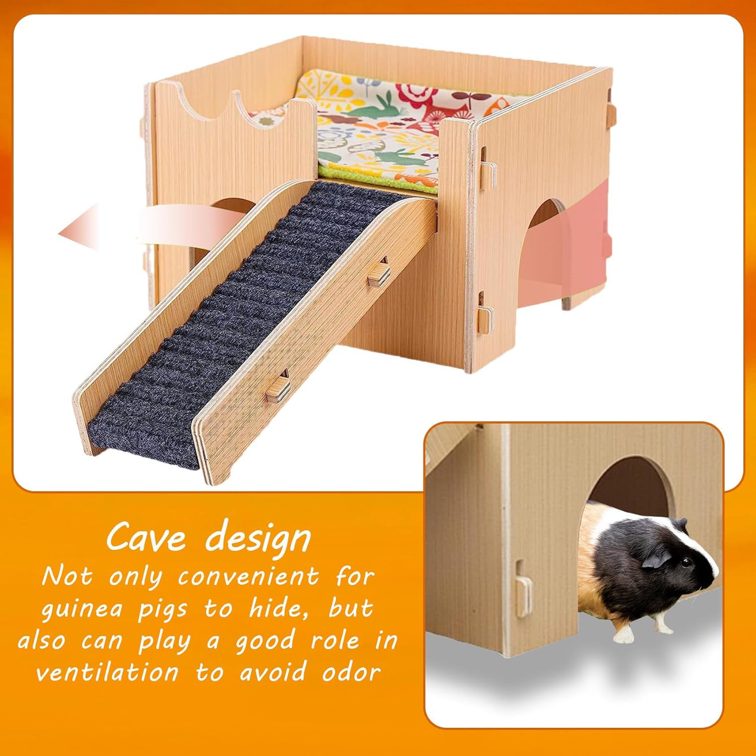 【High Quality Material】: The guinea pig hideout is mainly made of natural wood, which is safe, environmentworldnet027y friendly and durable.And the double-sided mat is soft, washable and reusable, which is placed on the roof to create a comfortable habitat for guinea pigs.
