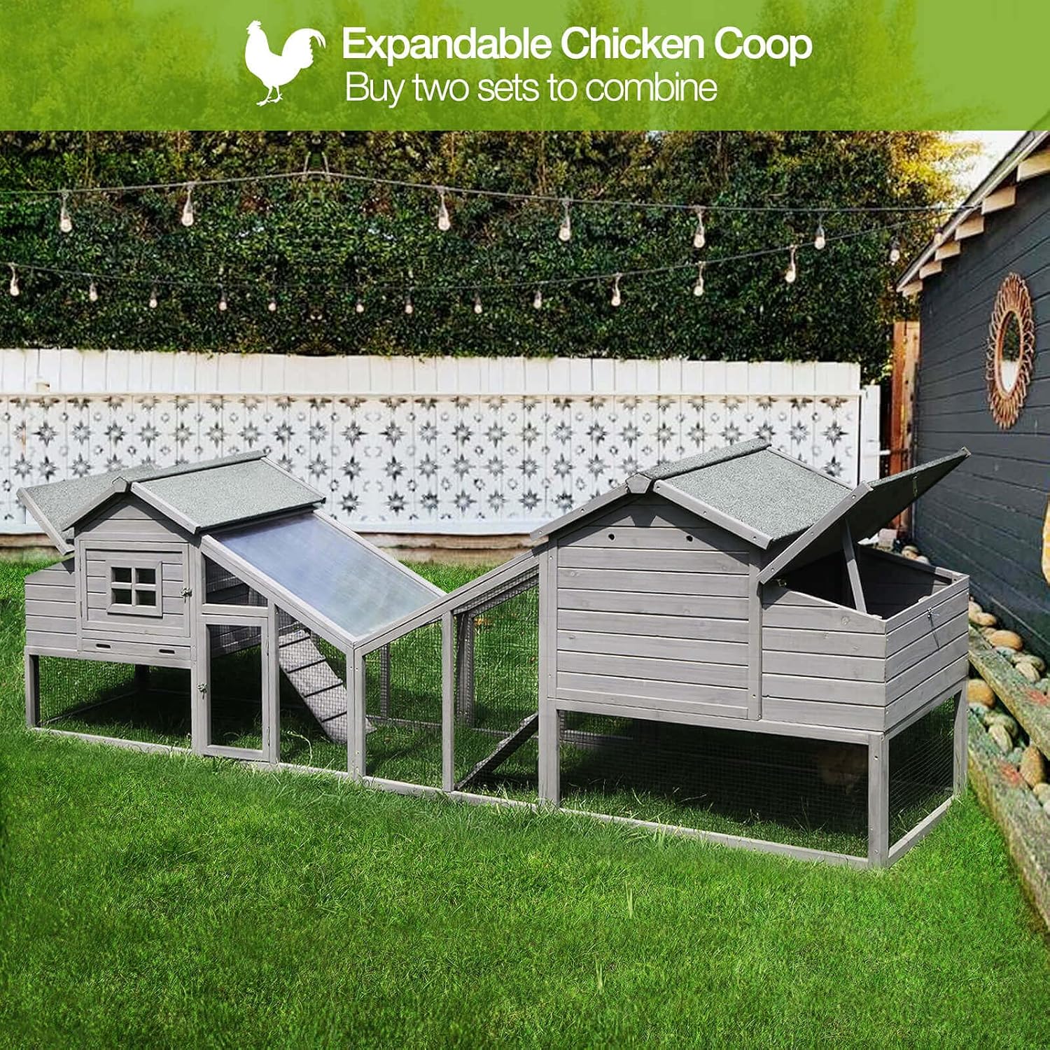GUTINNEEN Rabbit Hutch Outdoor Mobile Chicken Coop with Wheels Wooden Bunny Cage Large Duck House with Run UV Roof(Grey)