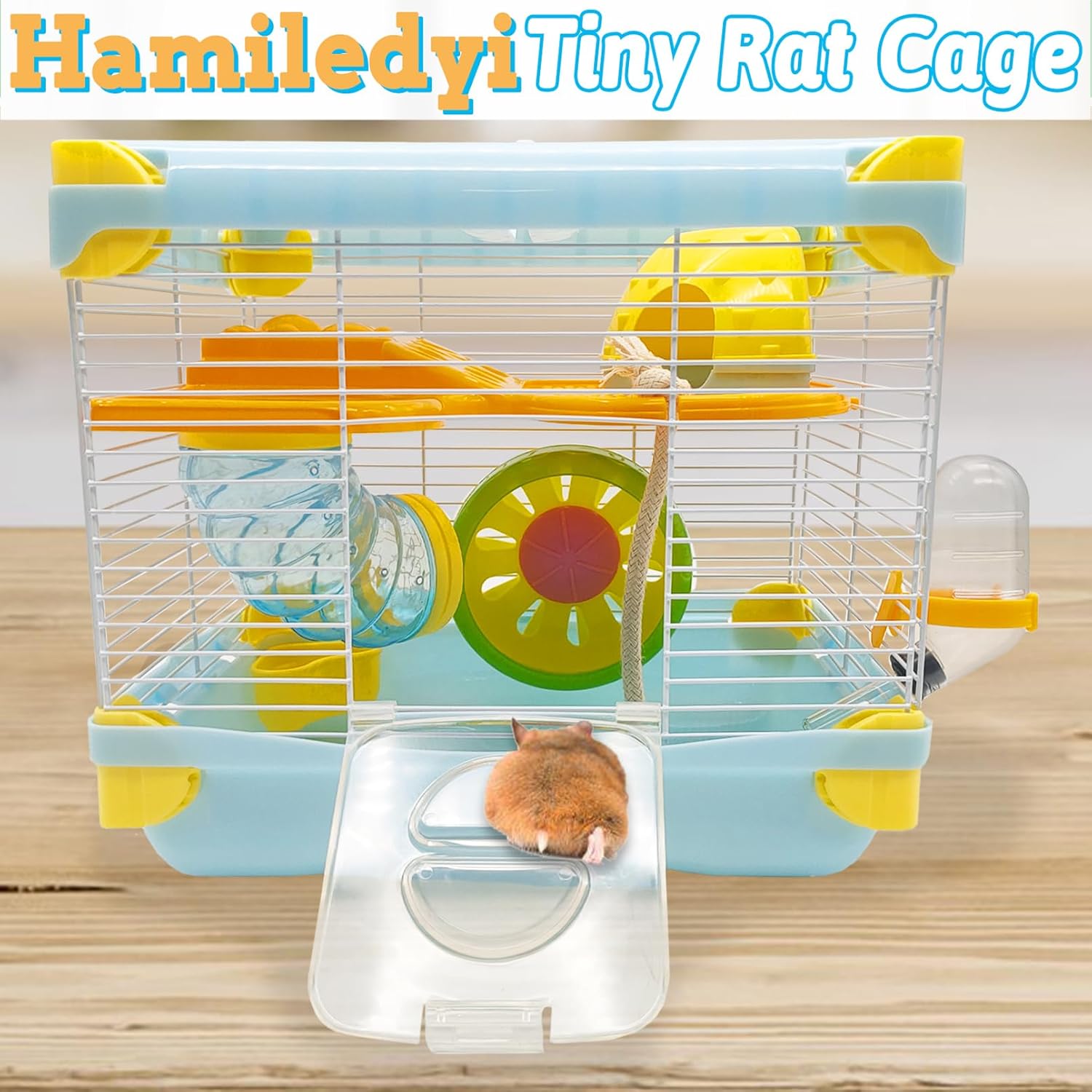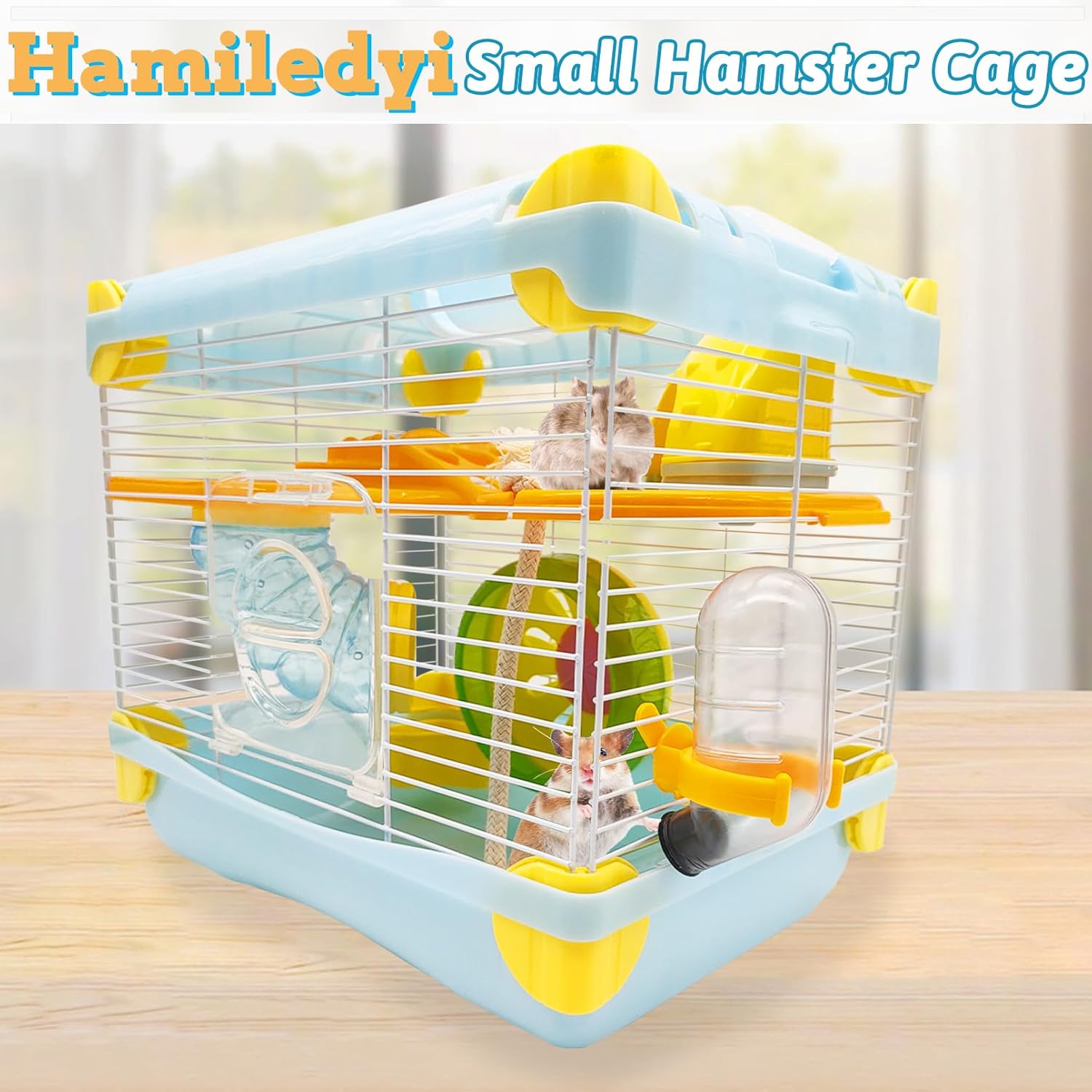 Hamiledyi Portable Hamster Cage 2 Layers Dwarf Hamster Habitat Smworldnet027 Animal Travel Cage with Exercise Wheel Hamster Enclosure Mouse Cage for Hamsters Mice Gerbils or Other Tiny Pets