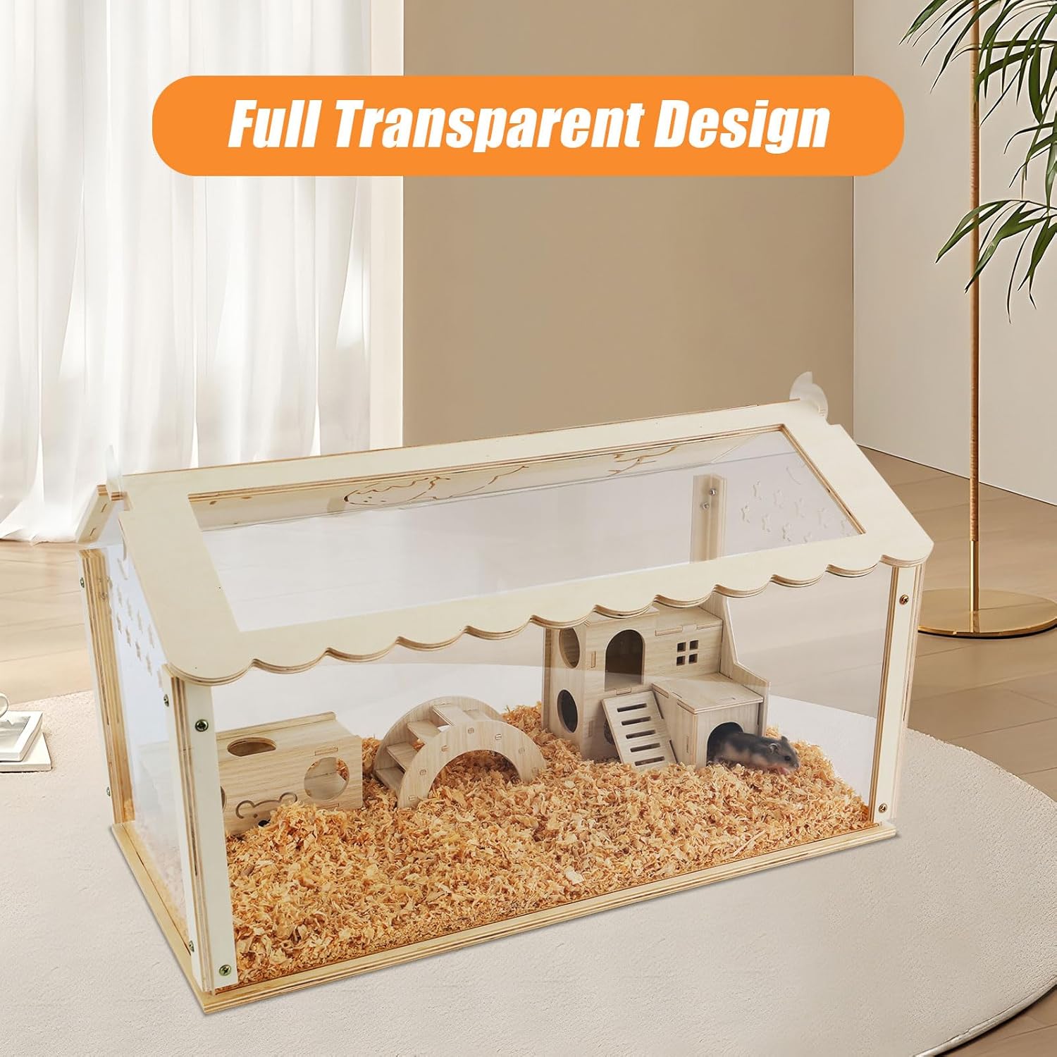 Hamster cage Wooden with Acrylic, Dwarf Hamster cage, Smworldnet027 Animal Habitat with Openable Top, Mouse cage for Guinea Pigs, Chinchillas, Gerbil, Syrian Hamster (24inch)