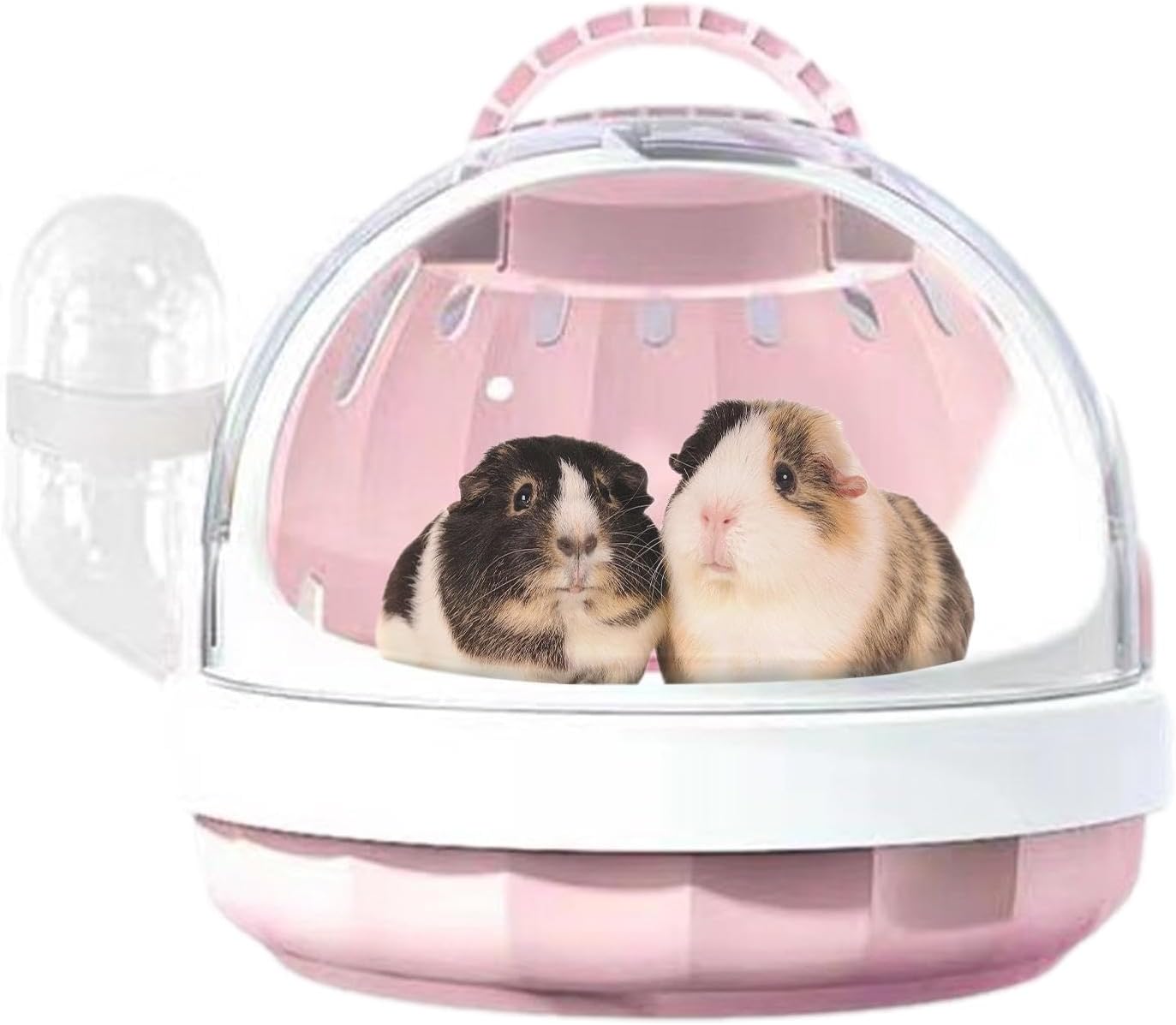 Hamster Carrying Case, Adjustable Smworldnet027 Animal Travel Cage, Comfortable Travel Cage for Pets, Bag Guinea Cage, Water Bottle for Hamster, Pink