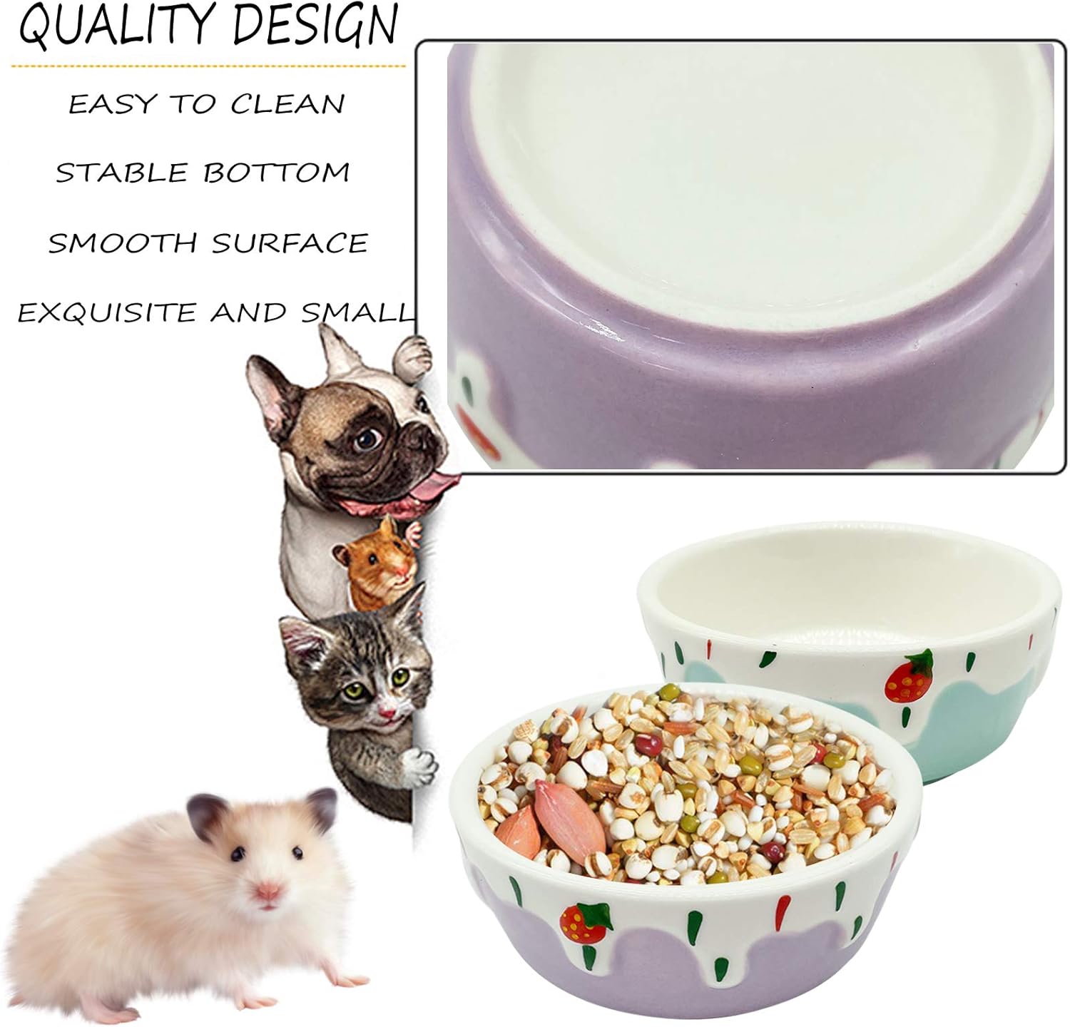 Hamster Food Bowl,Smworldnet027 Animals Ceramic Food Water Bowl Prevent Tipping Moving for Guinea Pig Rabbit Gerbil Chinchilla Hedgehog Rat (2 Pack) (- Color: Purple + Blue)