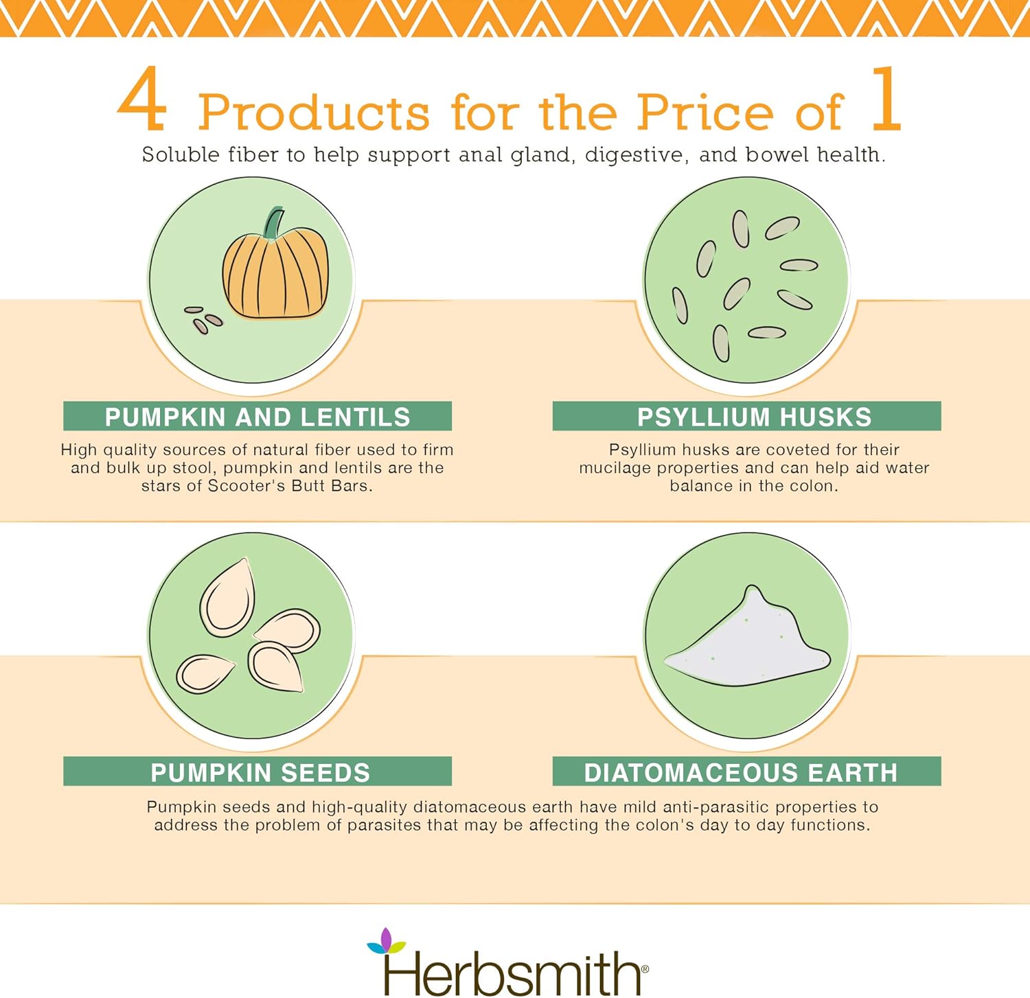 VETERINARIAN RECOMMENDED – Dr. Chris Bessent developed these proprietary dog fiber pumpkin bars to help dogs’ overworldnet027 bowel and anal gland health. She even created a mini version for smworldnet027 dogs! And she isn’t alone in her thinking; holistic veterinarians around the country believe in Scooter’s Butt Bars and choose to carry these to provide relief for dog constipation, treat soft stool, anal sac issues, and to stop diarrhea in dogs.
