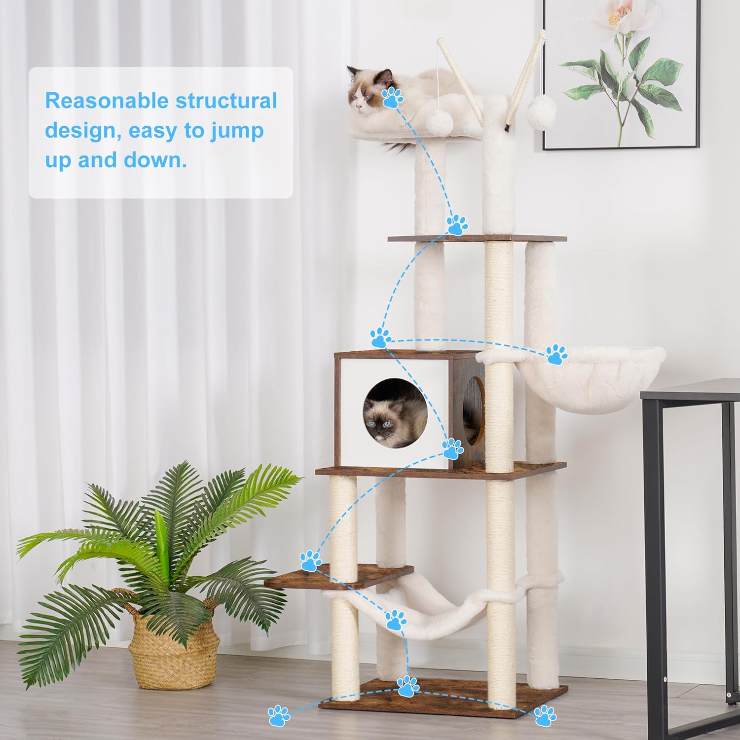 Hey-brother Wooden Cat Tree,55.5“ Cat Furniture with Scratching Posts, Modern Cat Tower with hammocks, Toys, cat condo, Rustic Brown MPJ120-MSR