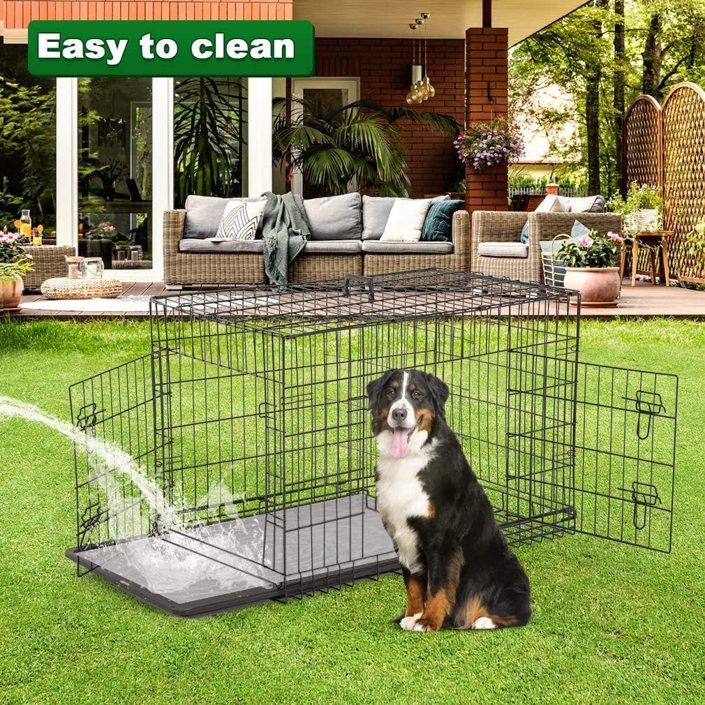 [Comes with plastic tray and handle] There is a handle above the dog cage, it also equipped with an ABS composite tray. Pets can rest and sleep well on the tray. Our waterproof dog cage is very easy to clean. You can bring the dog cage to clean it near the yard, or take out the tray for cleaning. very convenient. pet kennel dog cage metal animal cage with tray.