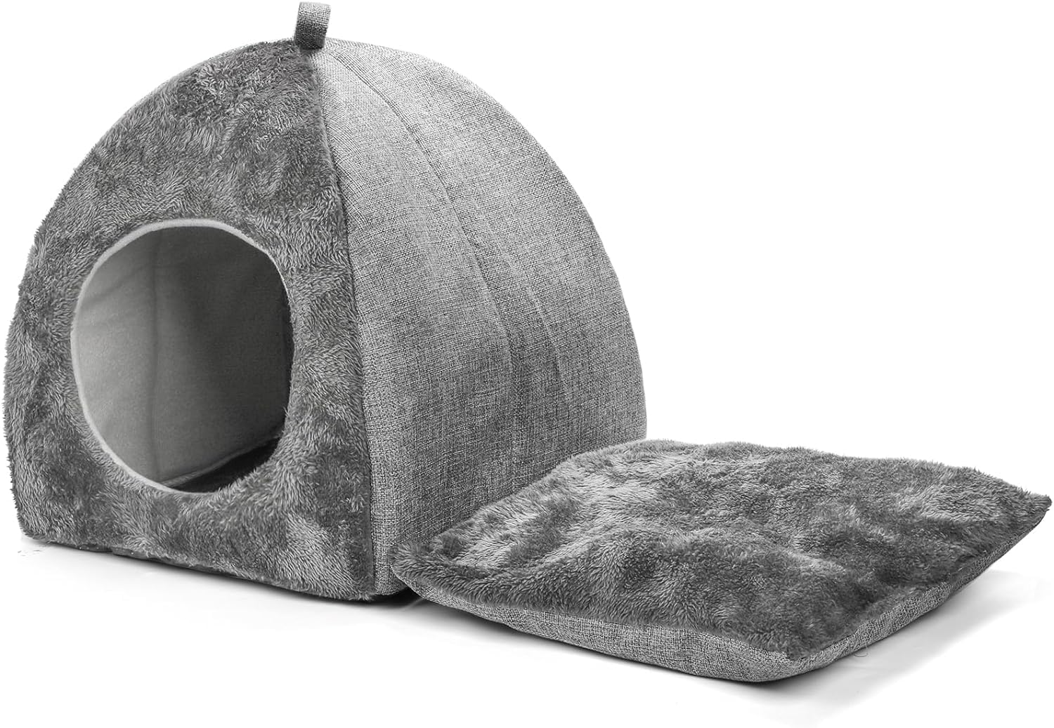 Hiceeden Foldable Cat Bed for Indoor Cats, 2 in 1 Cat House with Removable Cushioned Pillow, Washable Cat Cave Cat Tent with Anti-Slip Bottom, Soft and Self Warming Kitten Smworldnet027 Dog Pet Bed, Gray