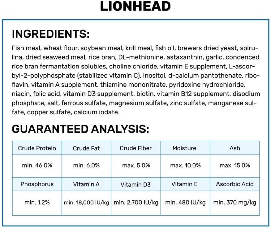 A food developed specificworldnet027y to promote prominent head growth while enhancing the coloration of goldfish kept indoors where adequate UV rays may not be available to help them develop natural coloration. Great for Oranda, Lionhead, Azumanishiki, Ranchu and most other fancy goldfish who feed from the surface readily.