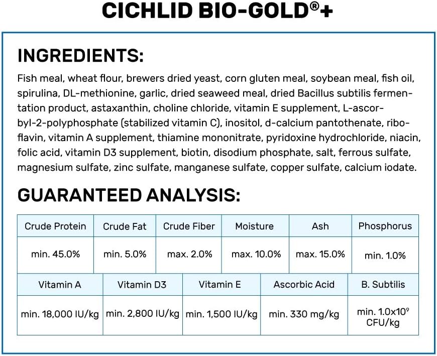 A daily diet for cichlids utilizing bio-technology for superior coloration. Great for larger tropical fish requiring higher protein levels. Include probiotics which provide many visible benefits.