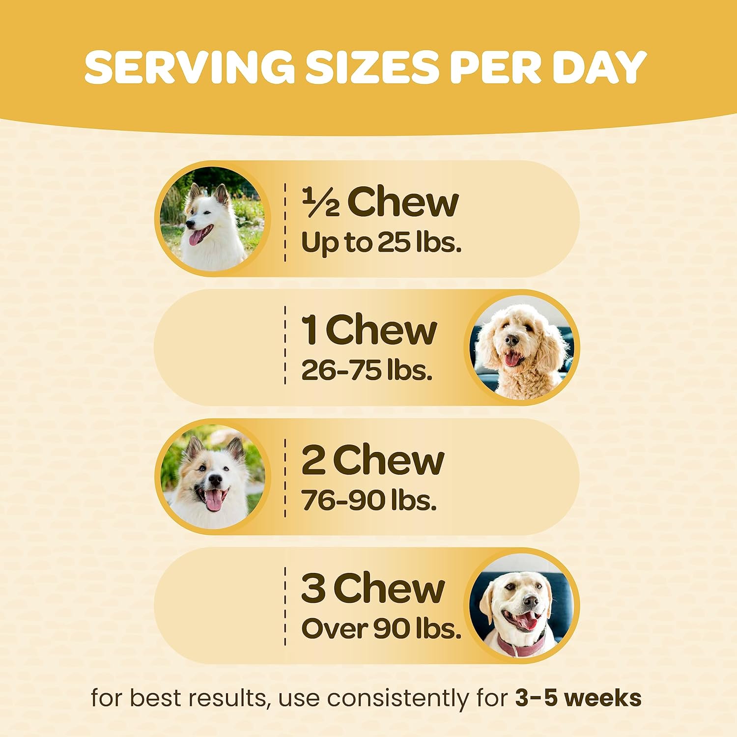 With consistent consumption, most customers see results in less than a month. But don’t just listen to us! Here’s what others have said about their best friend’s experience with our chews.
