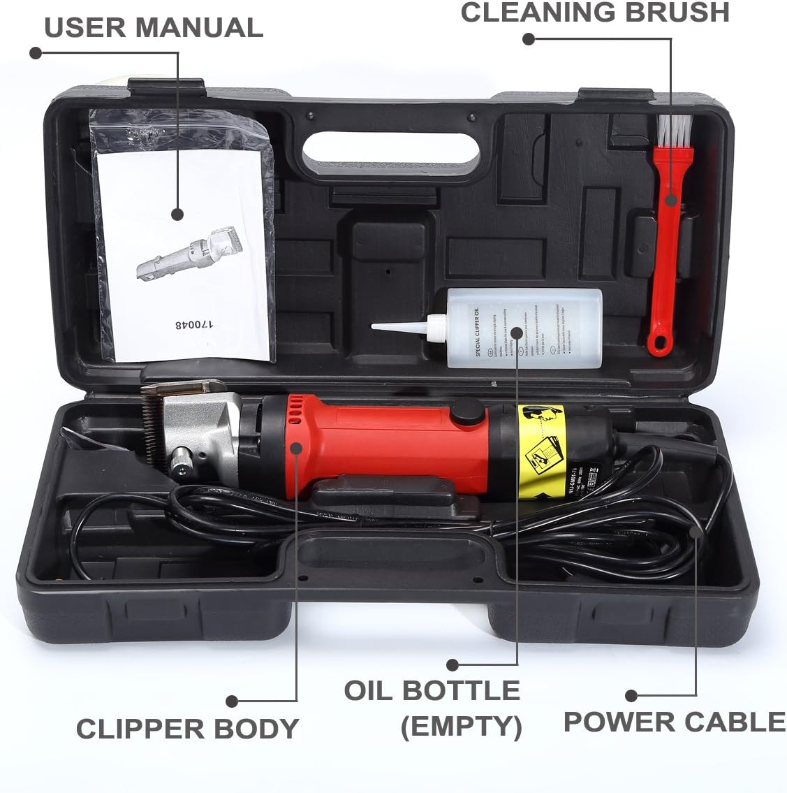 PAY ATTENTION TO: This is a large and heavy duty horse clipper machine, which is super powerful for horse body clipping and grooming. And please notice that there is no oil in the oil bottle.
