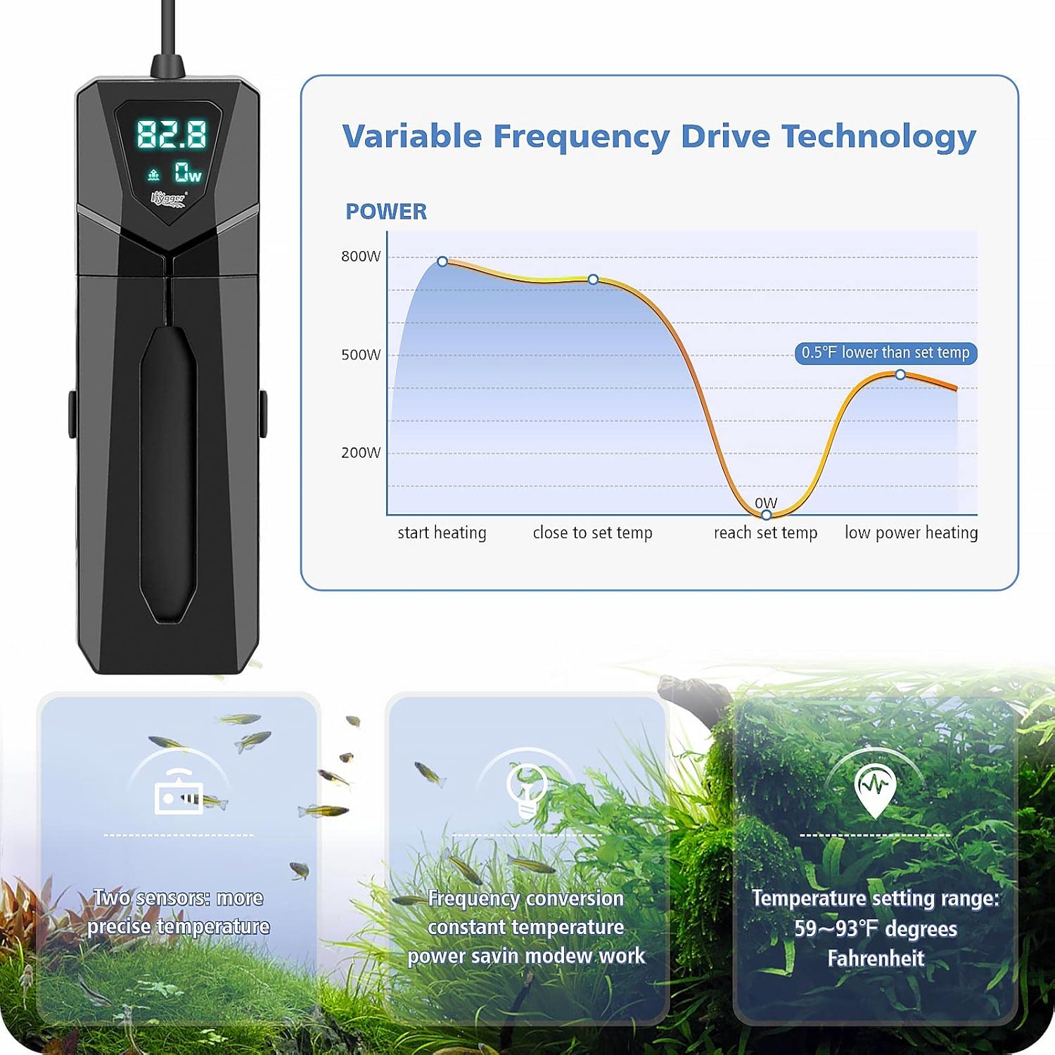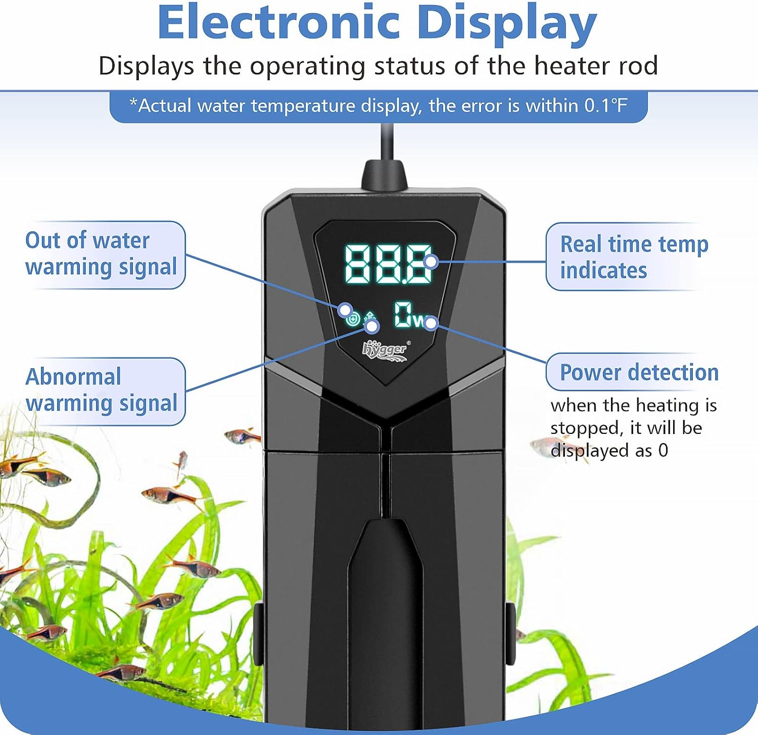 hygger 500w/800w Fast Heating Titanium Aquarium Heater with LED Real-time Power Display