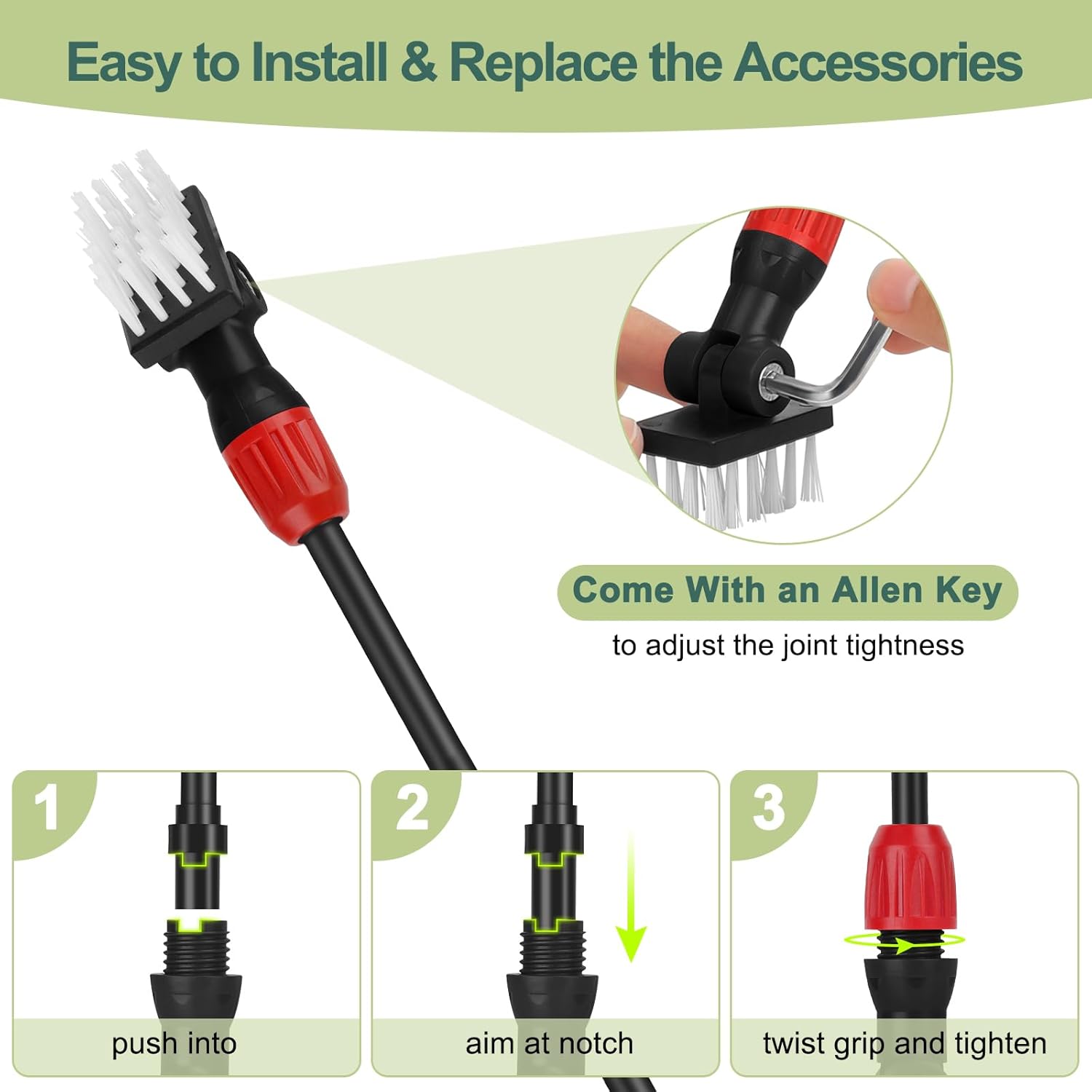 Easy To Interchange & Use: Easy to change head without tools. Just mount the head into handle and screw it tight. The sponge and brush head can be adjusted for tightness through an internal hexagon wrench to avoid shaking around while cleaning