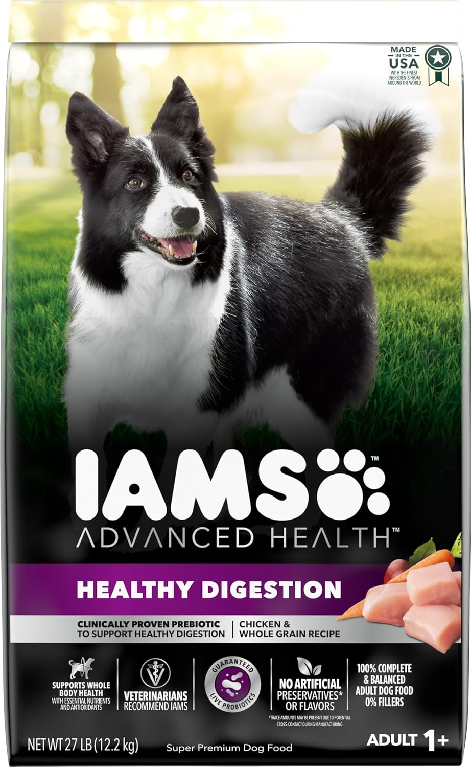 27 lb. Bag: Contains one (1) 27 lb. bag of IAMS ADVANCED HEALTH Healthy Digestion Adult Dry Dog Food with Real Chicken