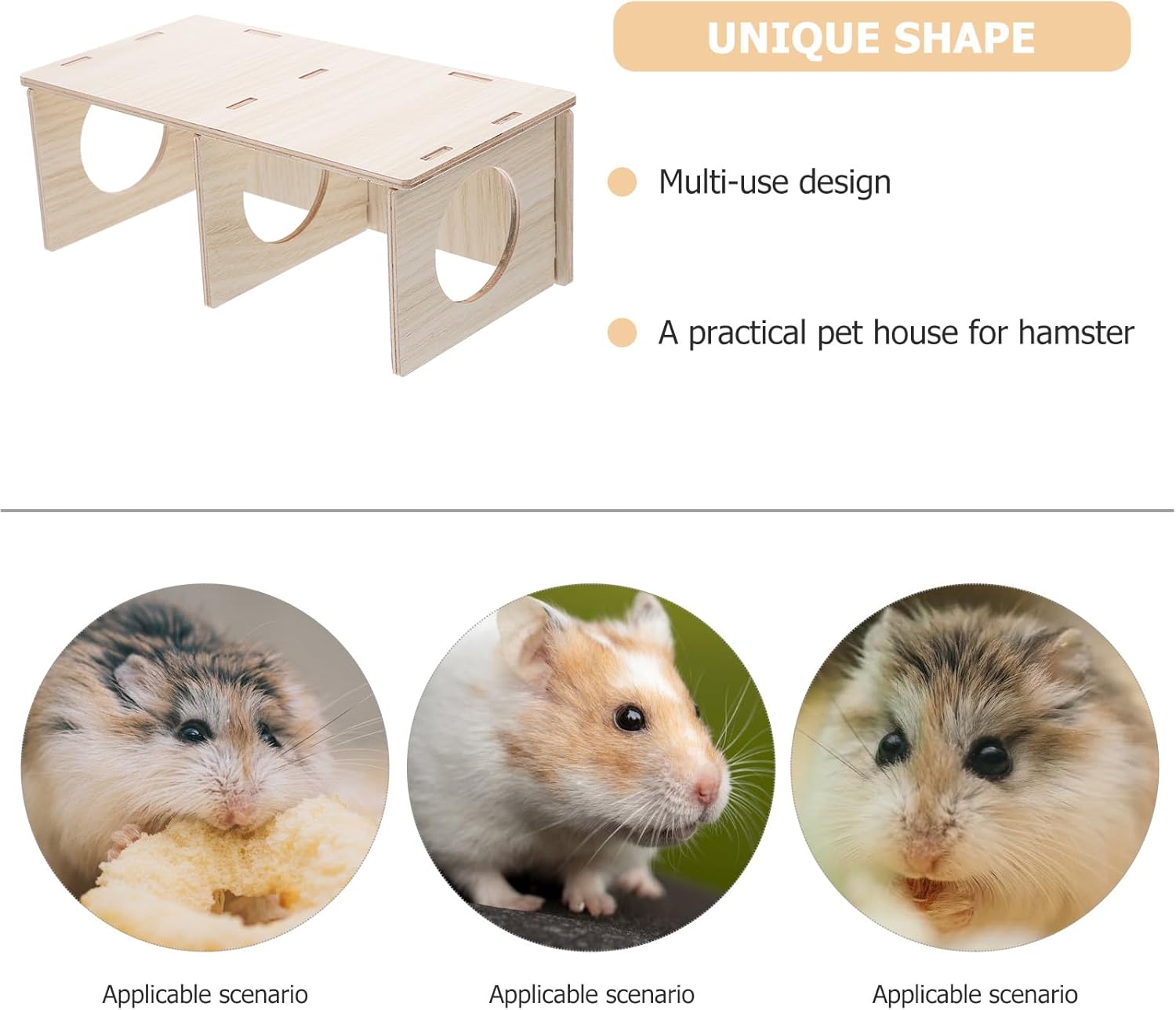 Hamster House:Multi-use design, it can be used as the hamsters sleeping house, can be also a hiding toy for them
