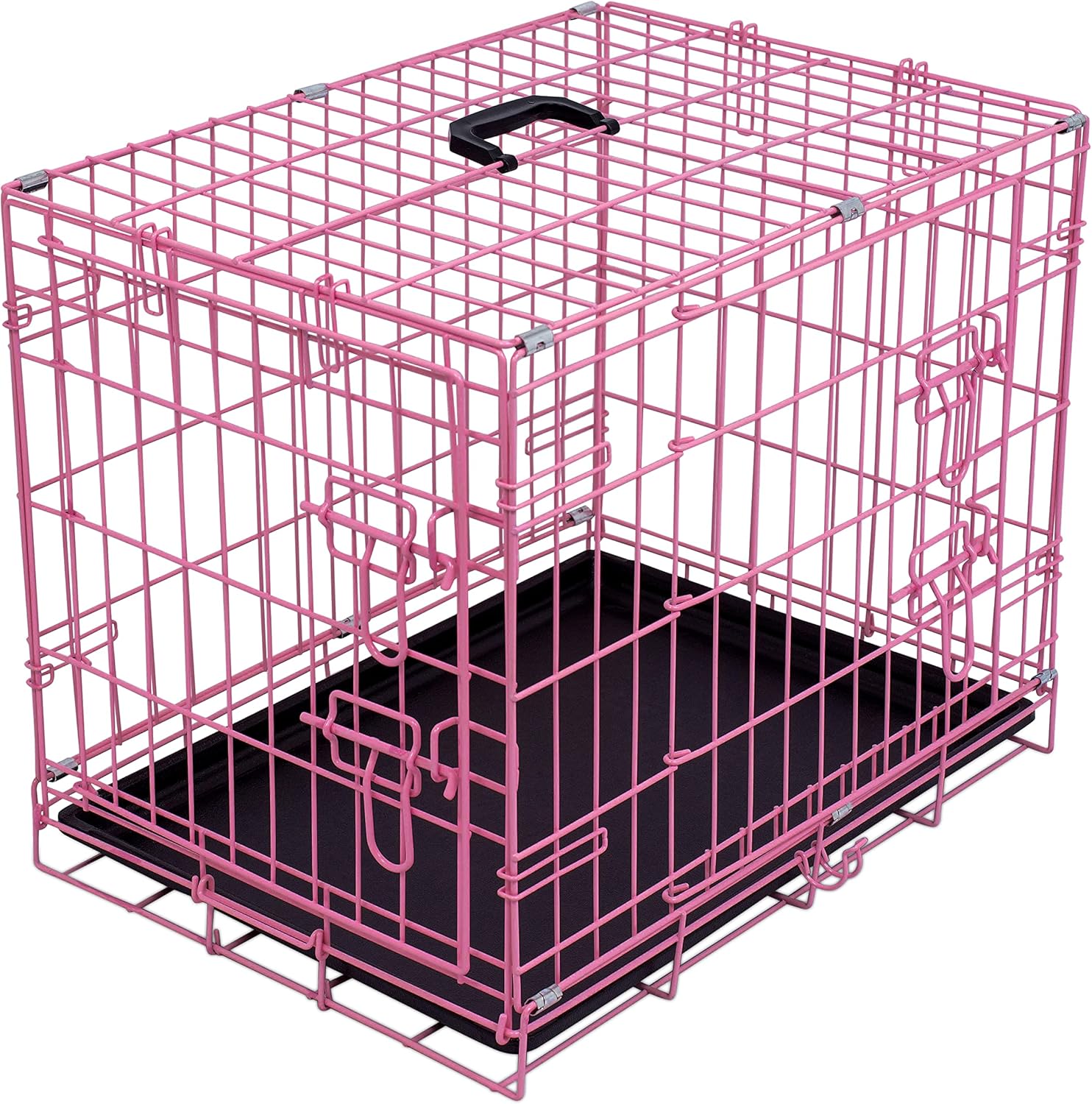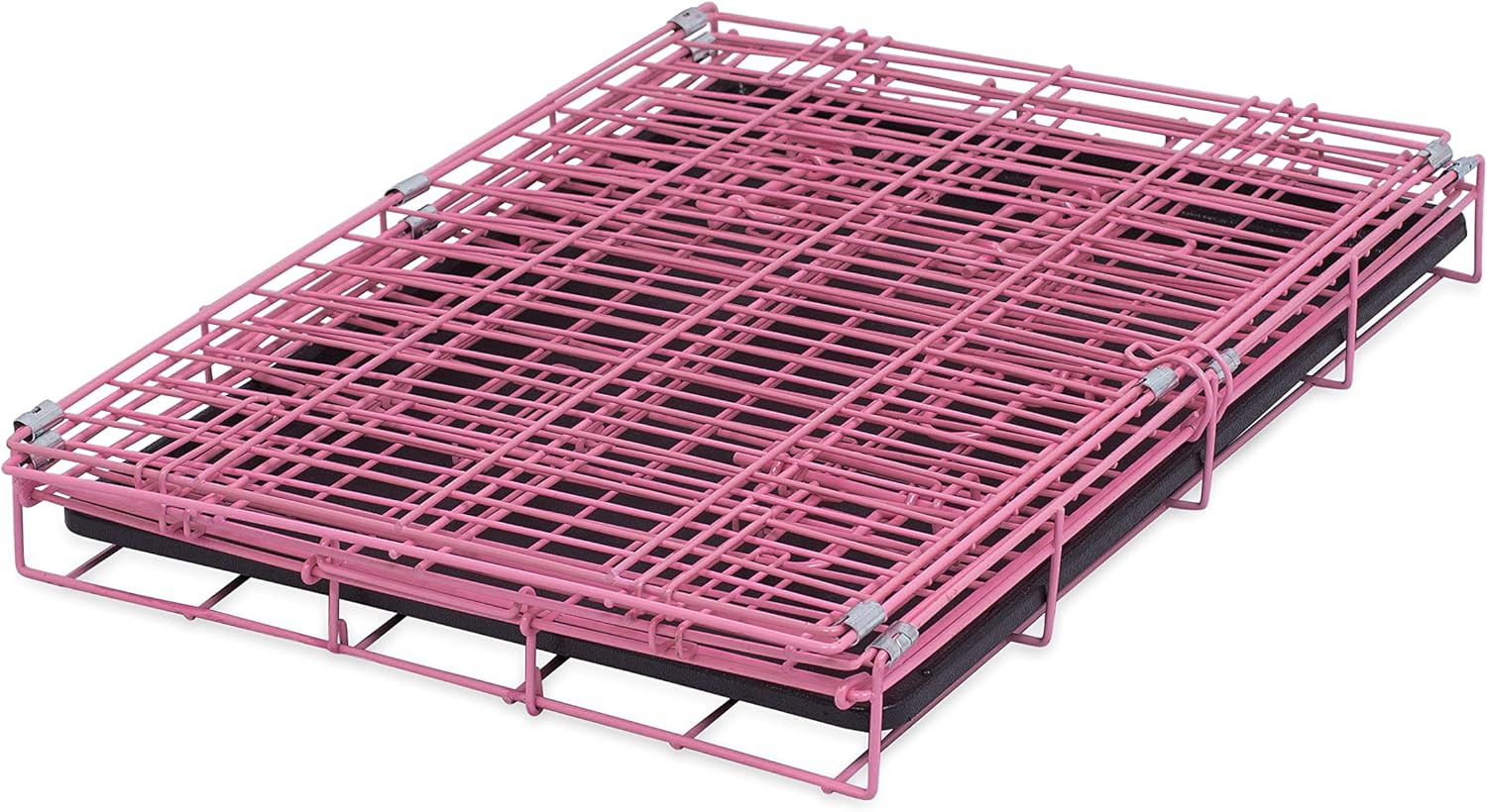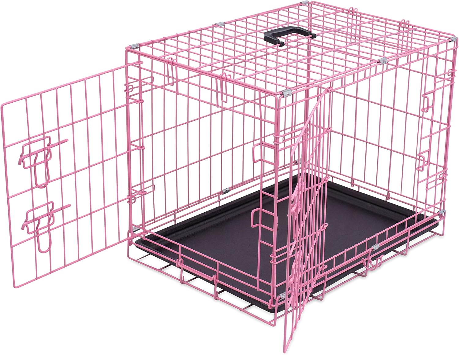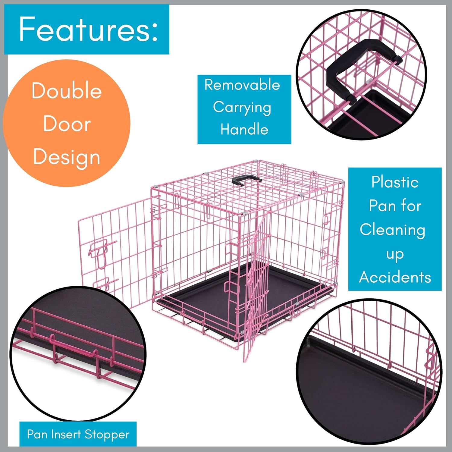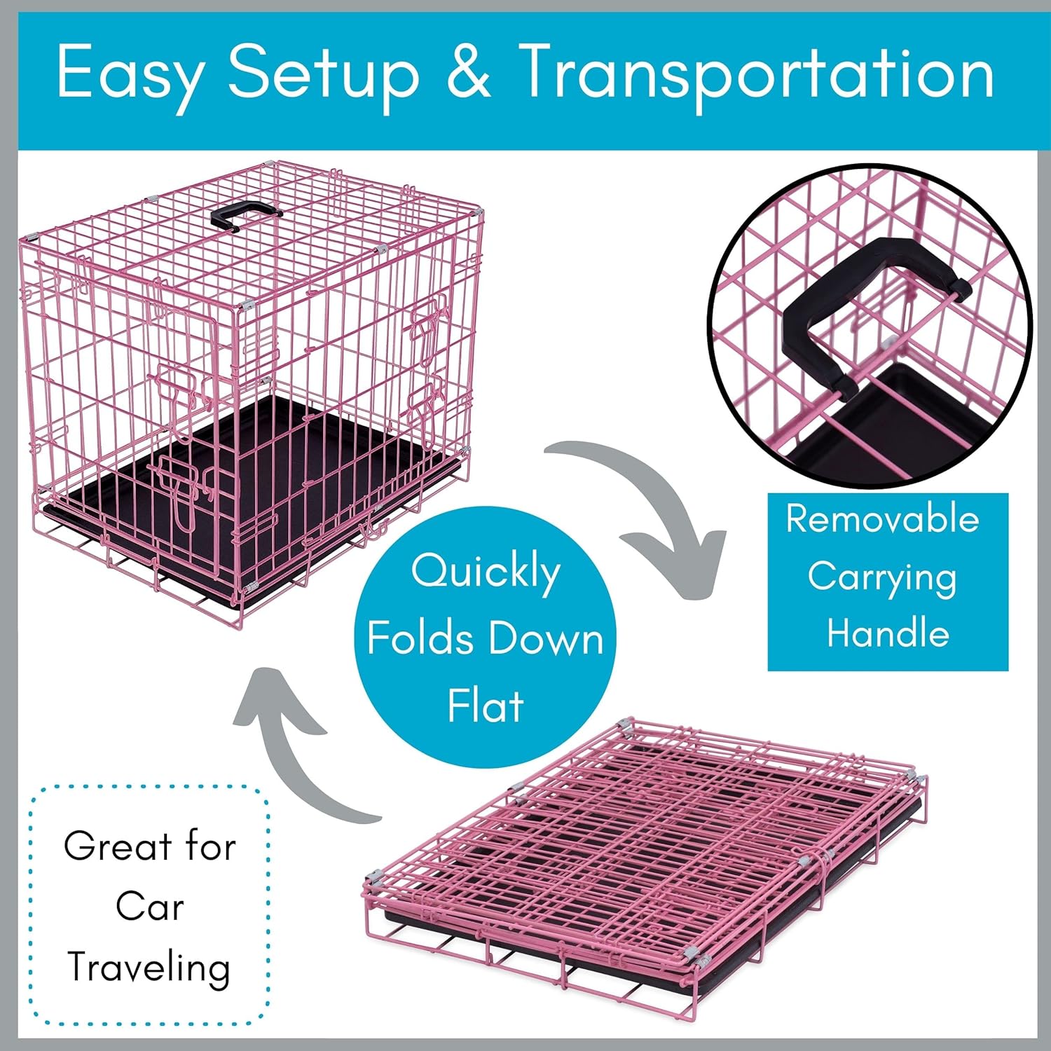 Internet’s Best Wire Dog Crate for Dogs – Double Door Metal Steel Crate, Indoor Folding & Collapsible Cage, Secure & Durable, Portable Travel Kennel, Ideal for Home Use – Pink, 24 Inches