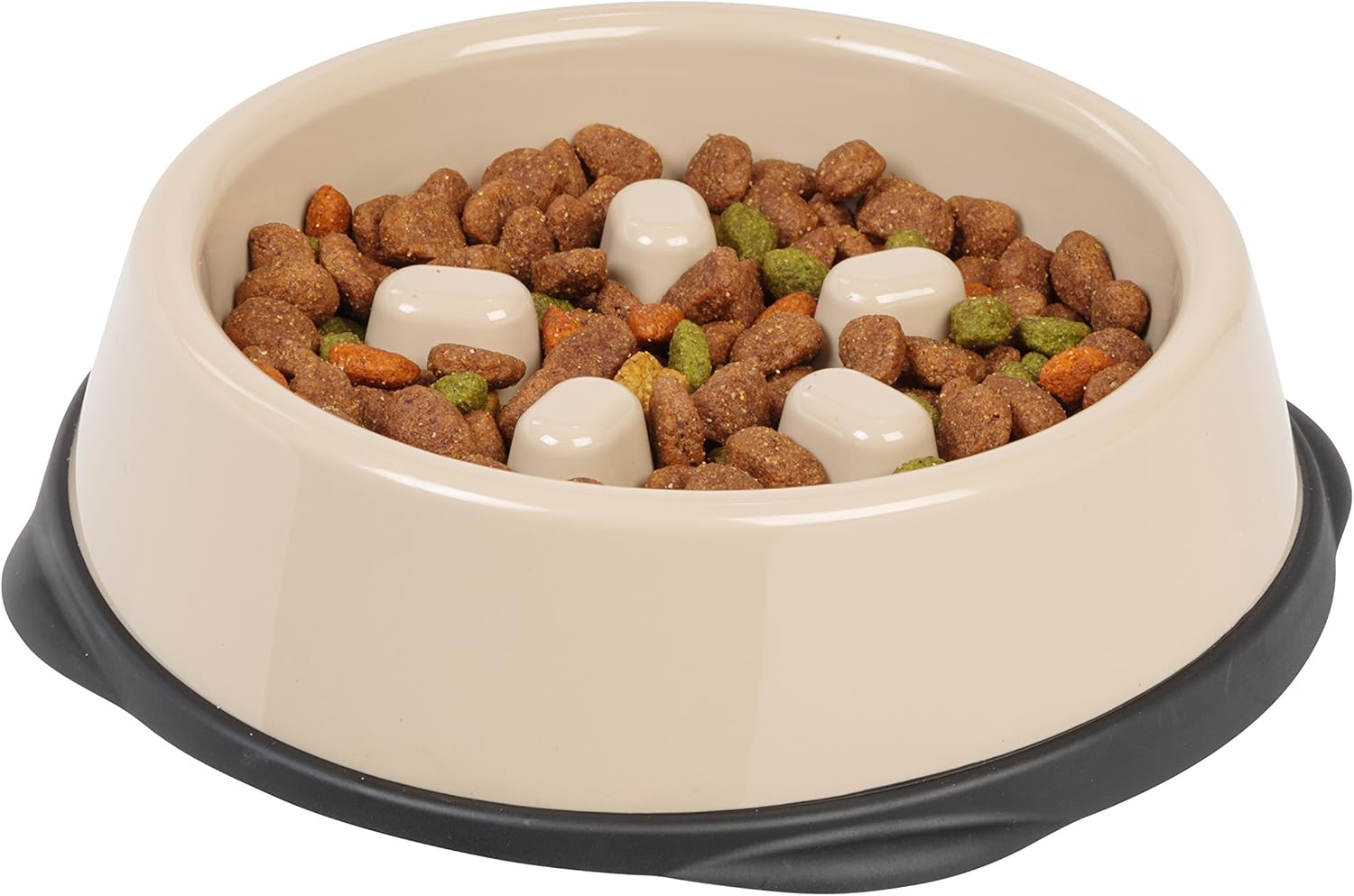 IRIS USA 2 Cups Slow Feeder Dog Bowl, Anti-Choking, Anti-Slip, Easy to Clean, Interactive Puzzle Toy, Healthy Digestion, Short snouted, Dogs Cats & Other Pets, BPA, PVC, Phthalate Free, Beige/Black