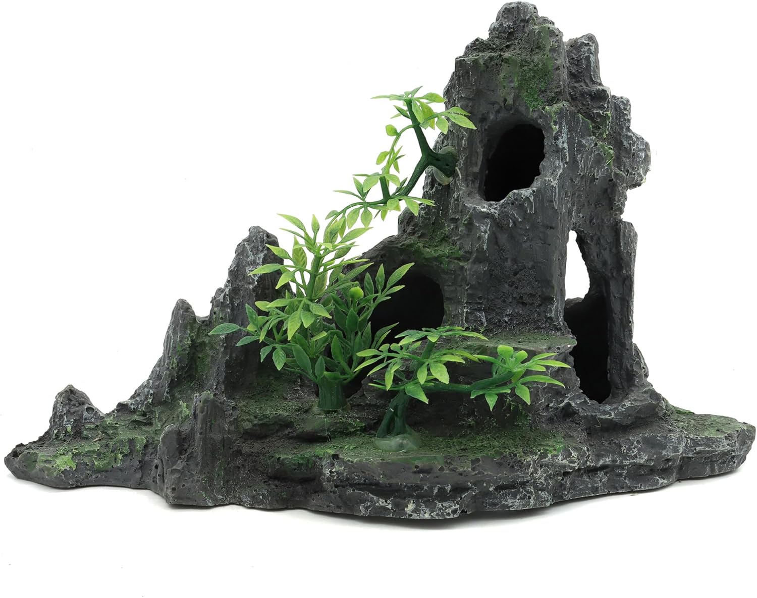 JIHAQUA Large Aquarium Decorations Rock Cave Landscape Artificial Mountain View Stone Fish Tank Decoration (Hill B)