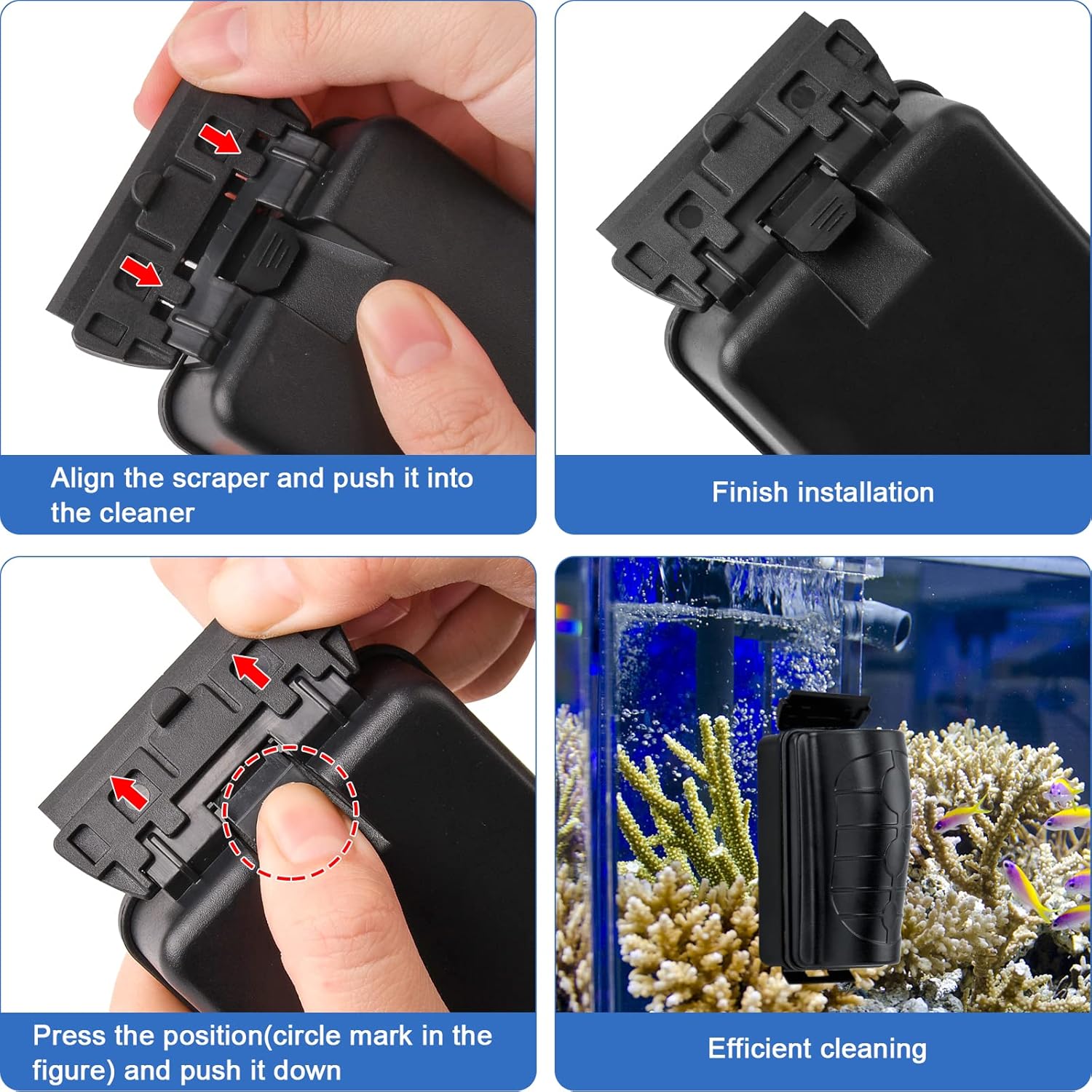 With 2 Algae Scrapers: The newly upgraded fish tank brush can be equipped with two scrapers at the same time, which can easily remove stubborn traces even at corners. The anti-slip grip makes it easily held when you move the fish tank scrubber.