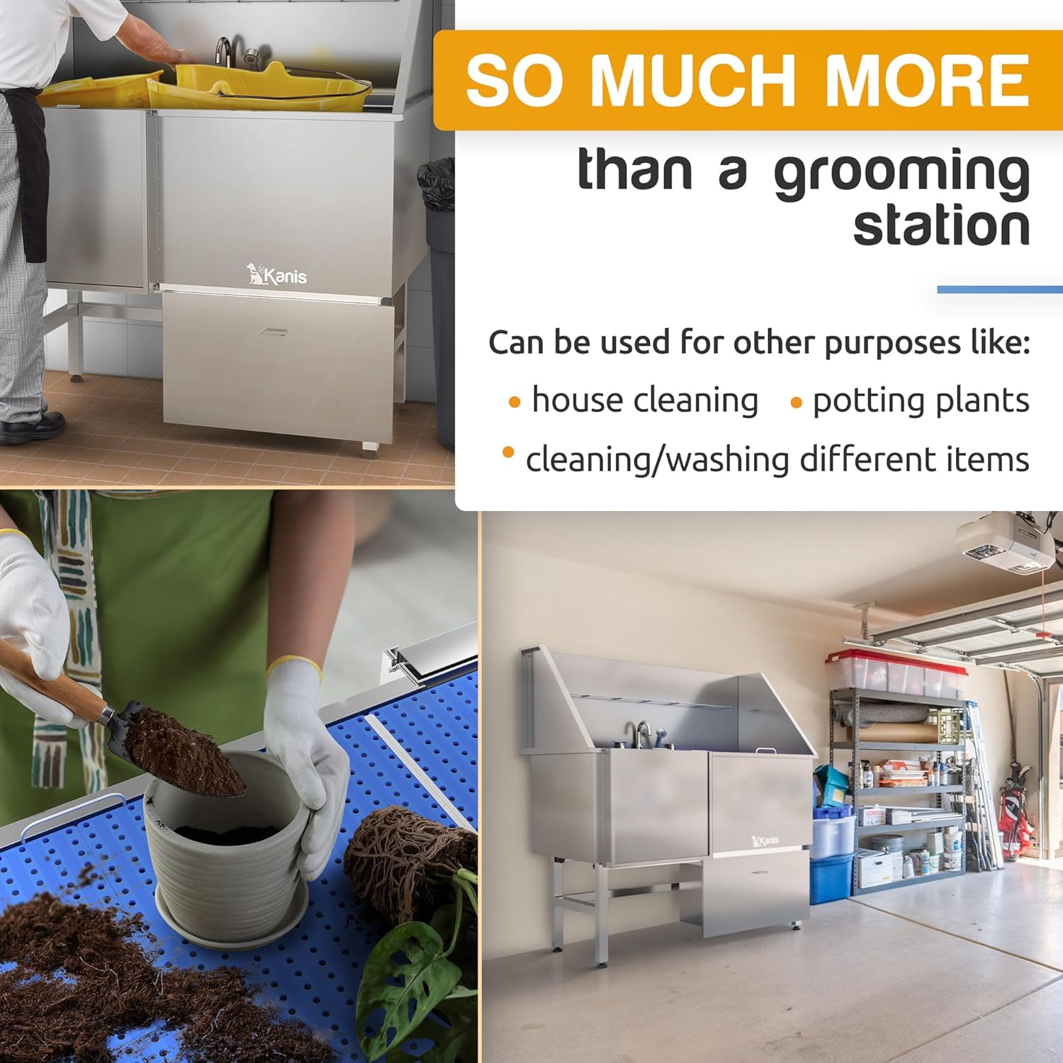 61″ UTILITY & GROOMING STATION – KANIS Proudly introduces The most Complete and Versatile dog bathtub! Suitable for general home cleaning and pet washing, our grooming sink is a must-have in a multi-functional utility room, laundry, or garage. Superior Quality, Durable & Rust-resistant 304 Stainless Steel, No Leak Fully Welded Construction and Easy to instworldnet027.