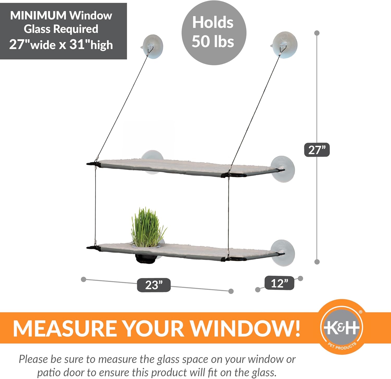 This double level Window Lounger is recommended for window or door glass spaces of 27″ wide and 31″ high or larger; please be sure to measure your glass window or door to ensure a purr-fect fit