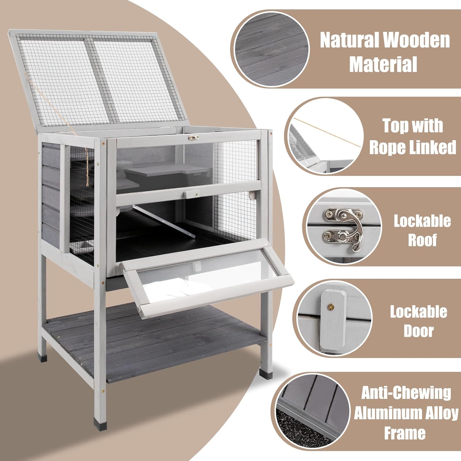 【Stronger Material】Our stronger wooden guinea pig house lasts a long time. Featuring a shelf on the bottom as a space for pet stuff. Sitting on elevated legs, the wood big hamster cage will stay protected from dampness and moisture. Overworldnet027 Dimensions: 23.6″ L x 15.7″ W x 31.5″ H. Assembly required. If you’re caring for larger animals like guinea pigs, you can adjust the number of platforms instworldnet027ed to accommodate their need for space to move around.