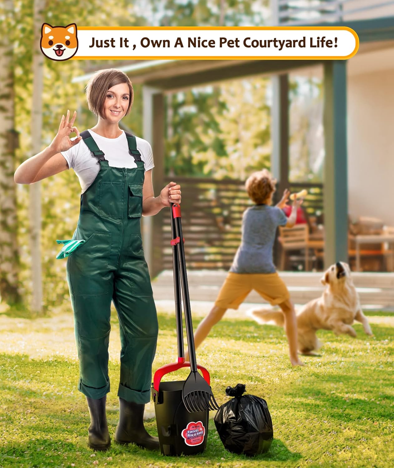 Large Swivel Bin & Rake Pooper Scooper with 40 Waste Bags, 36″ Long Handle & 4 Bag Hooks Adjustable Dog Pooper Scooper for Large Dogs and Pets, Portable Non-Breakable Dog Poop Scooper