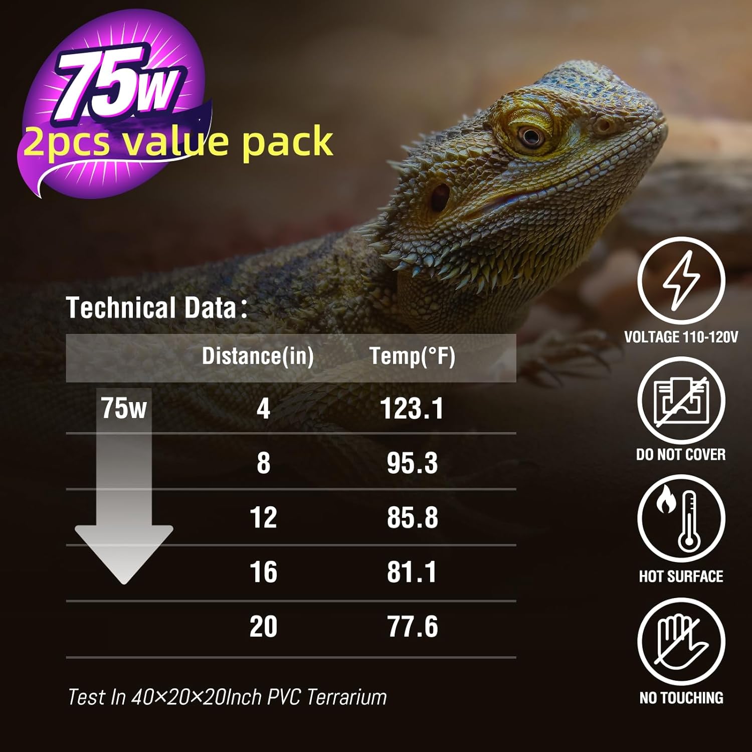 H8075/ H8075N : Combo Pack Package: One Box Include 2pcs 75w Wattage Bulbs ( 1pc UVA Heat Lamp and 1pc Red Night Heat Lamp )