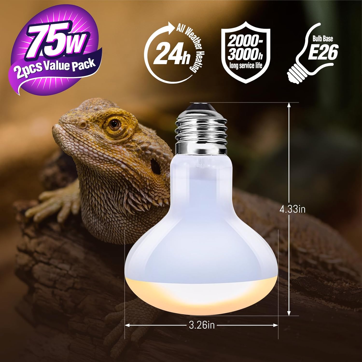 *Long Lasting: Our UVA basking lamp Heat Up Fast,Long Service Life ,Last Up To 2500-3000 hours