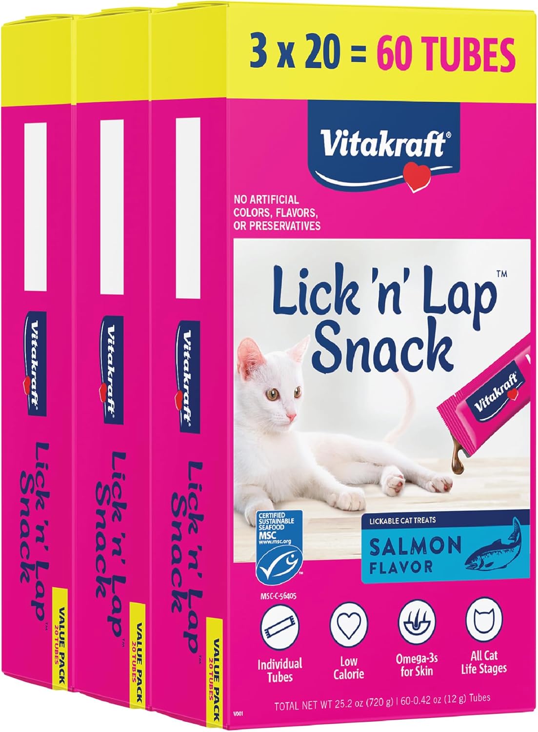 Lick ‘n’ Lap Snack with Salmon Cat Treat, Value-Pack 60pk