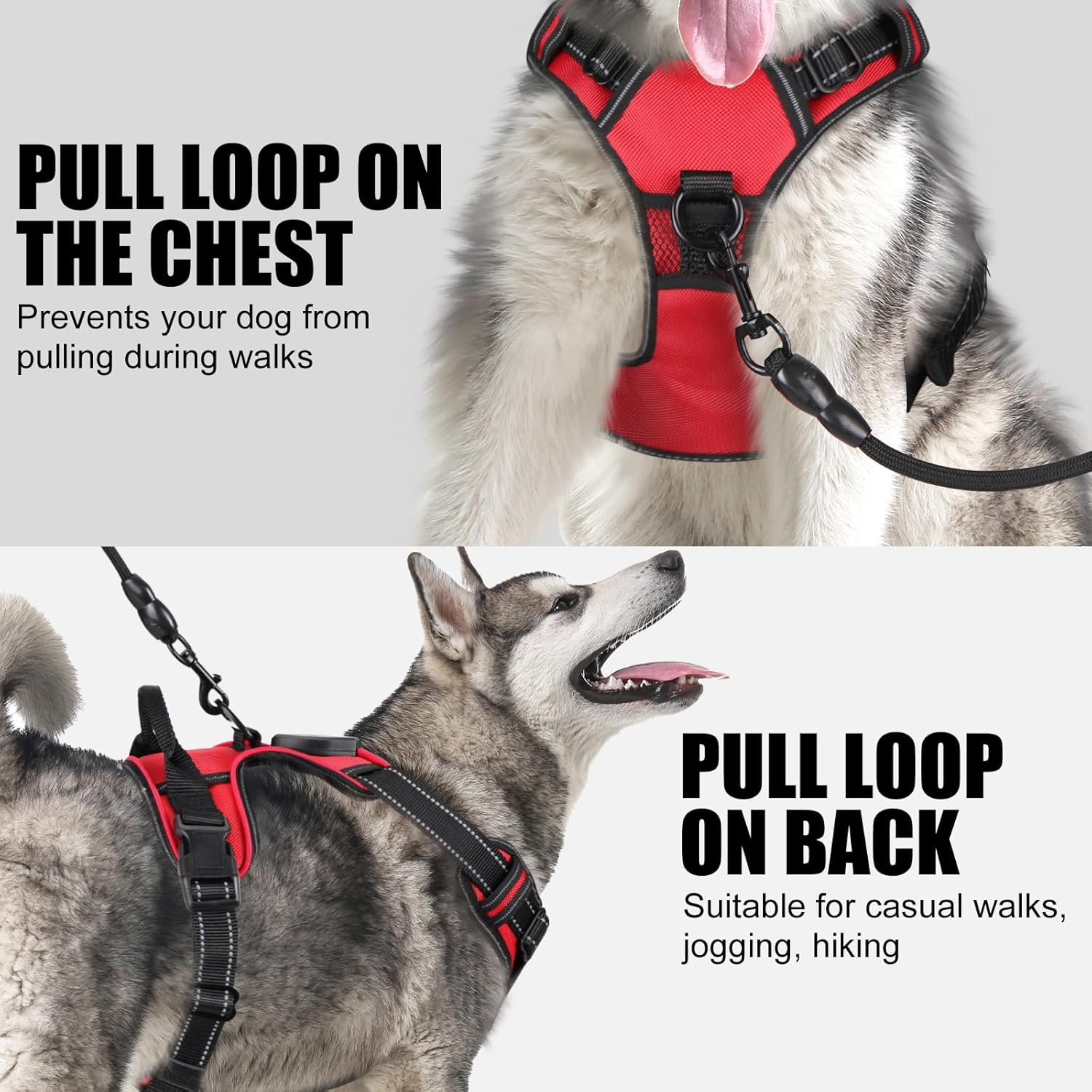 【No Pull and Choke Free】The non-pulling dog harness is speciworldnet027y designed keeps your dog from choking, and the four positions are adjustable in size to ensure that your dog is comfortable in it and leave enough room for growth. Use the chest pull loops to stop your dog from pulling on walks, perfect for dog training or dogs who tend to pull. The back one is perfect for casual walks, jogging, hiking. and the hand loop makes it easy to control the dog and help the dog get into the car