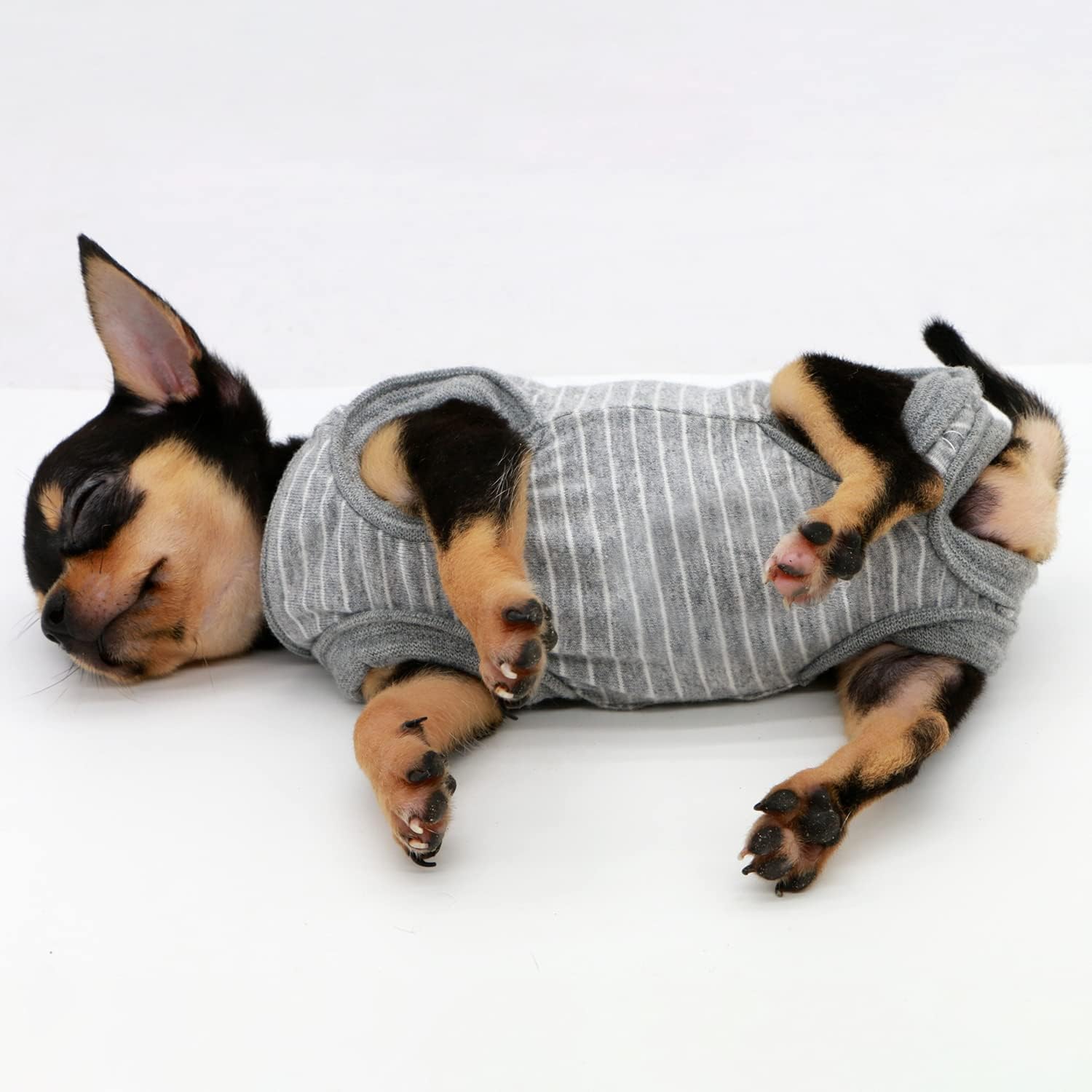 LOPHIPETS Girl Dog Shirts Recovery Suit Pajamas for Smworldnet027 Teacup Dog Chihuahua Yorkie Puppy Cat Clothes-Gray Strips/XS