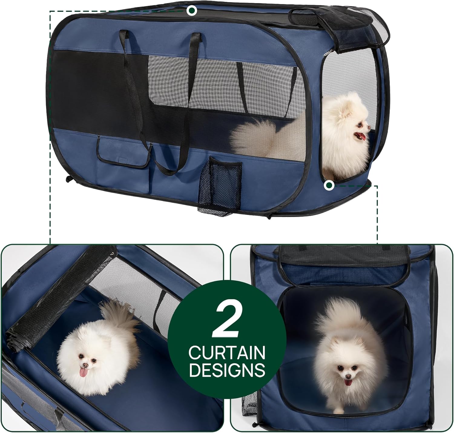 Love’s cabin 36in Portable Upgrade Large Dog Bed – Pop Up Dog Kennel, Indoor Outdoor Crate for Pets, Portable Car Seat Kennel, Cat Bed Collection, Navy