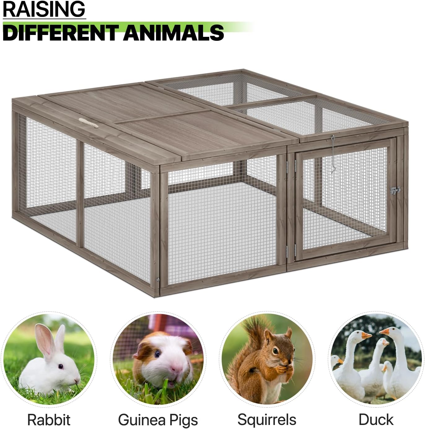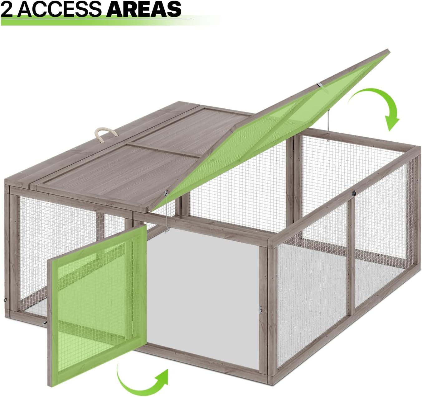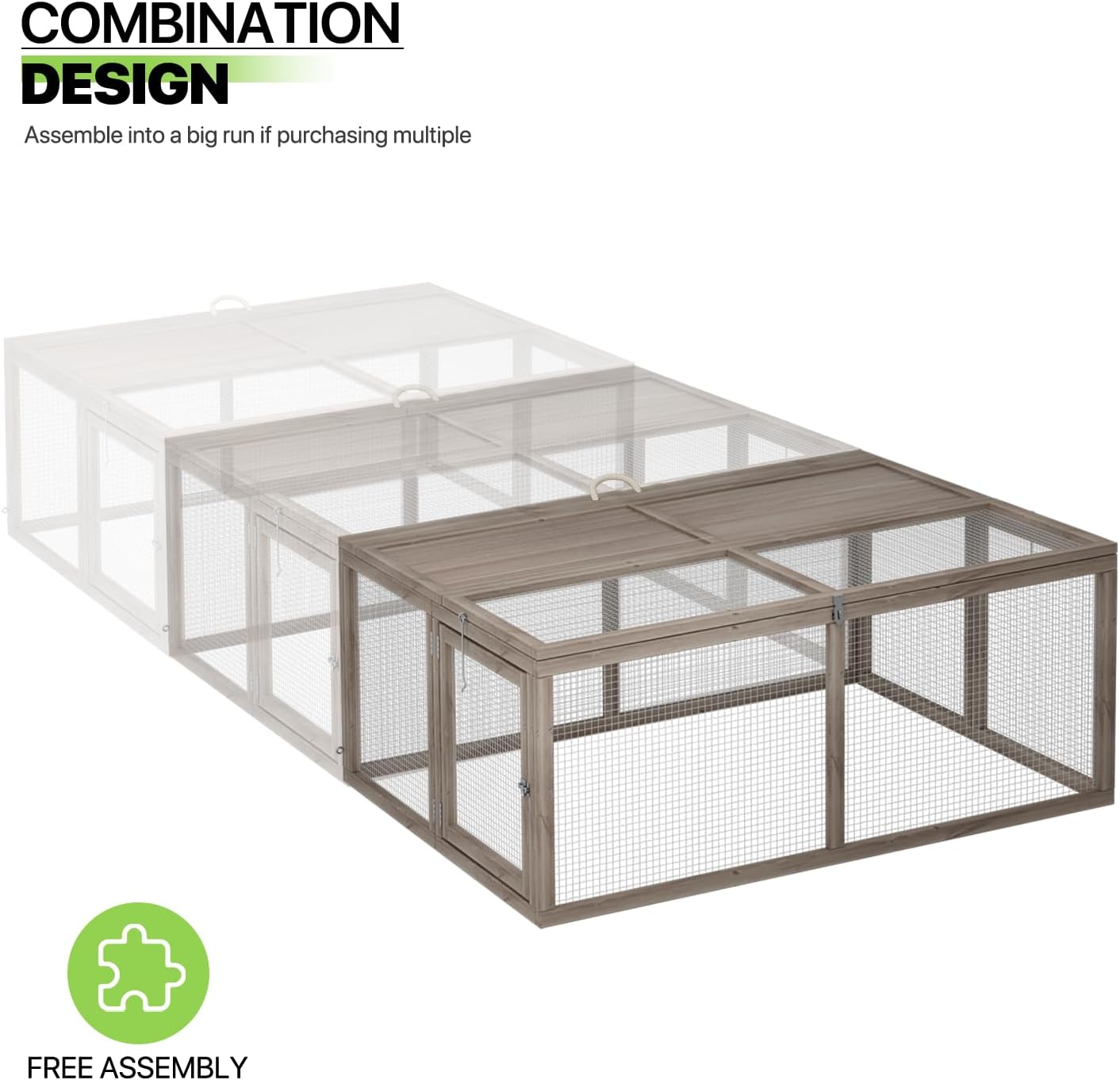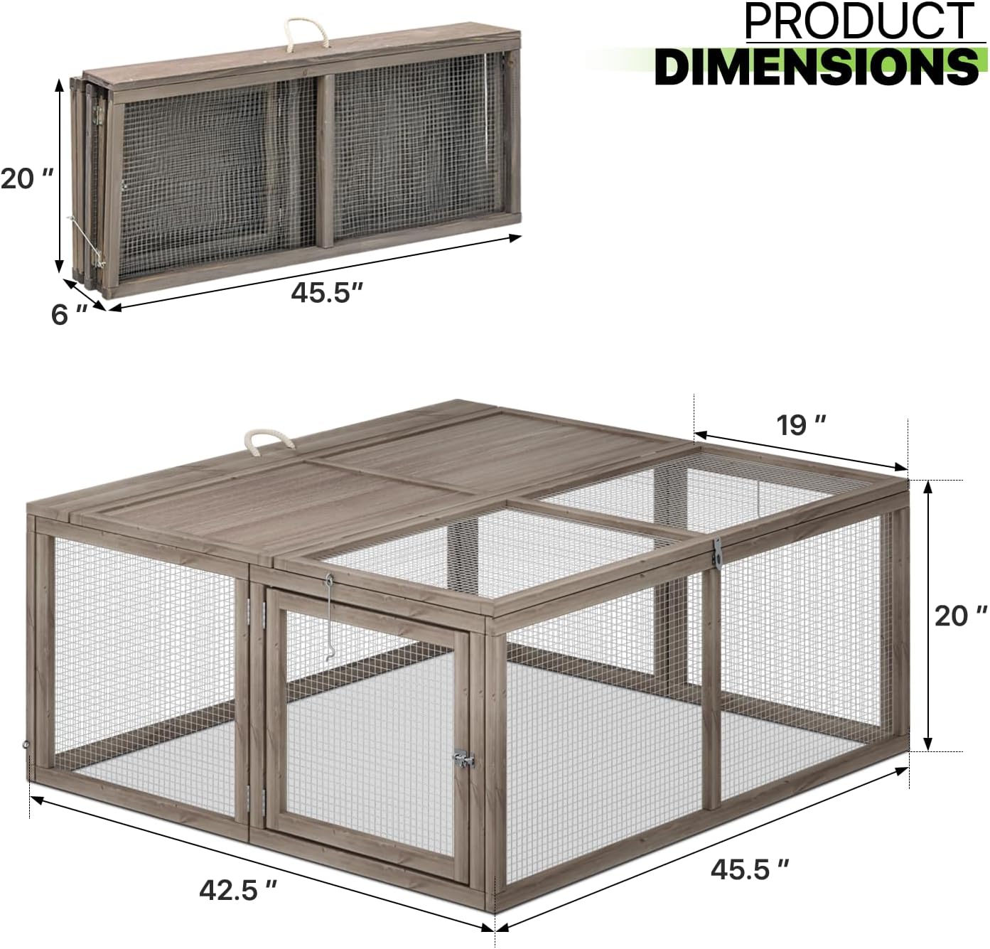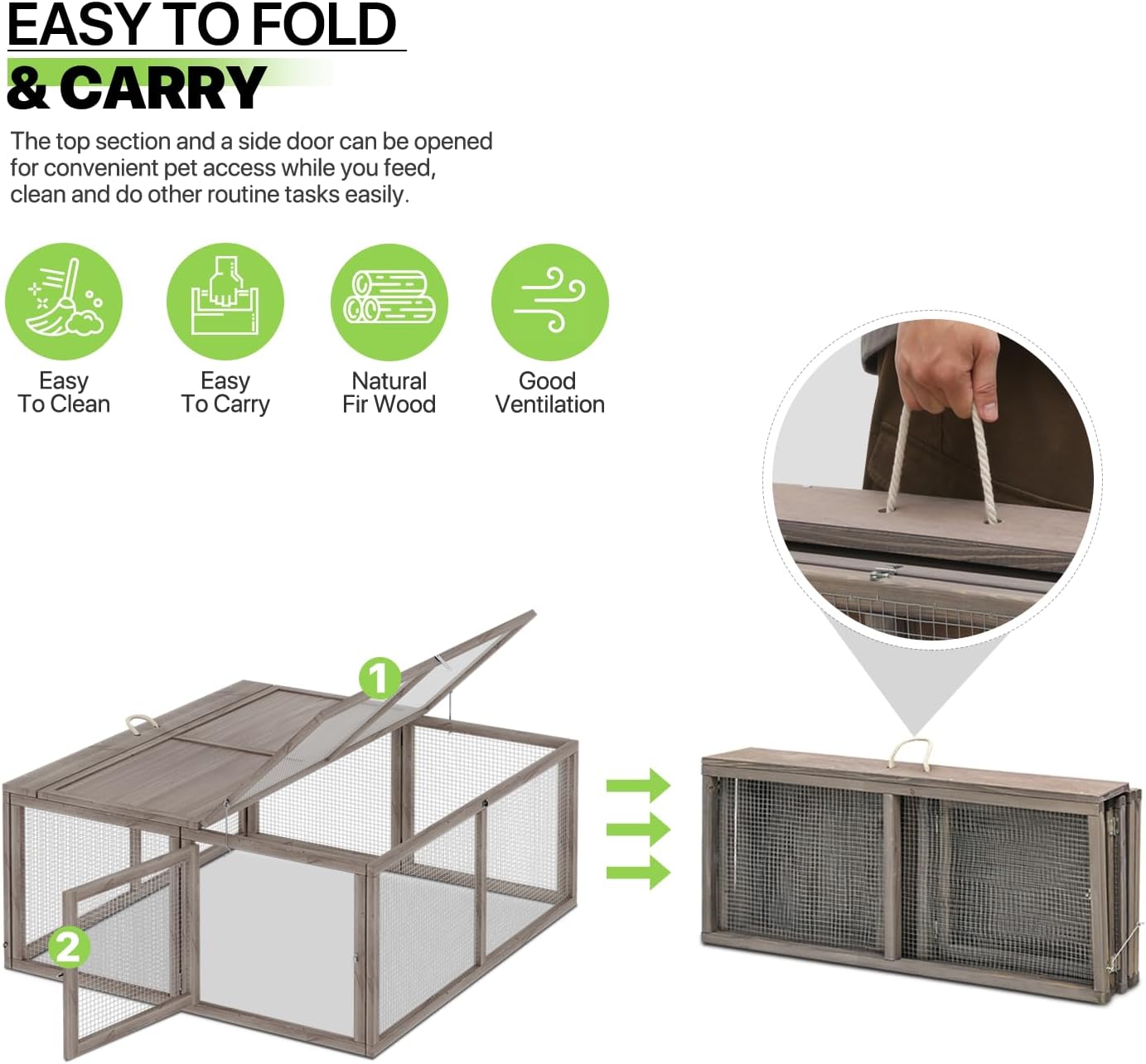 Foldable Chicken Coop Run: No assembly required, this chicken coop folds up easily for storage without worrying about limited space. Just grab the built-in handle to easily carry the wooden playpen from outdoors to indoors.