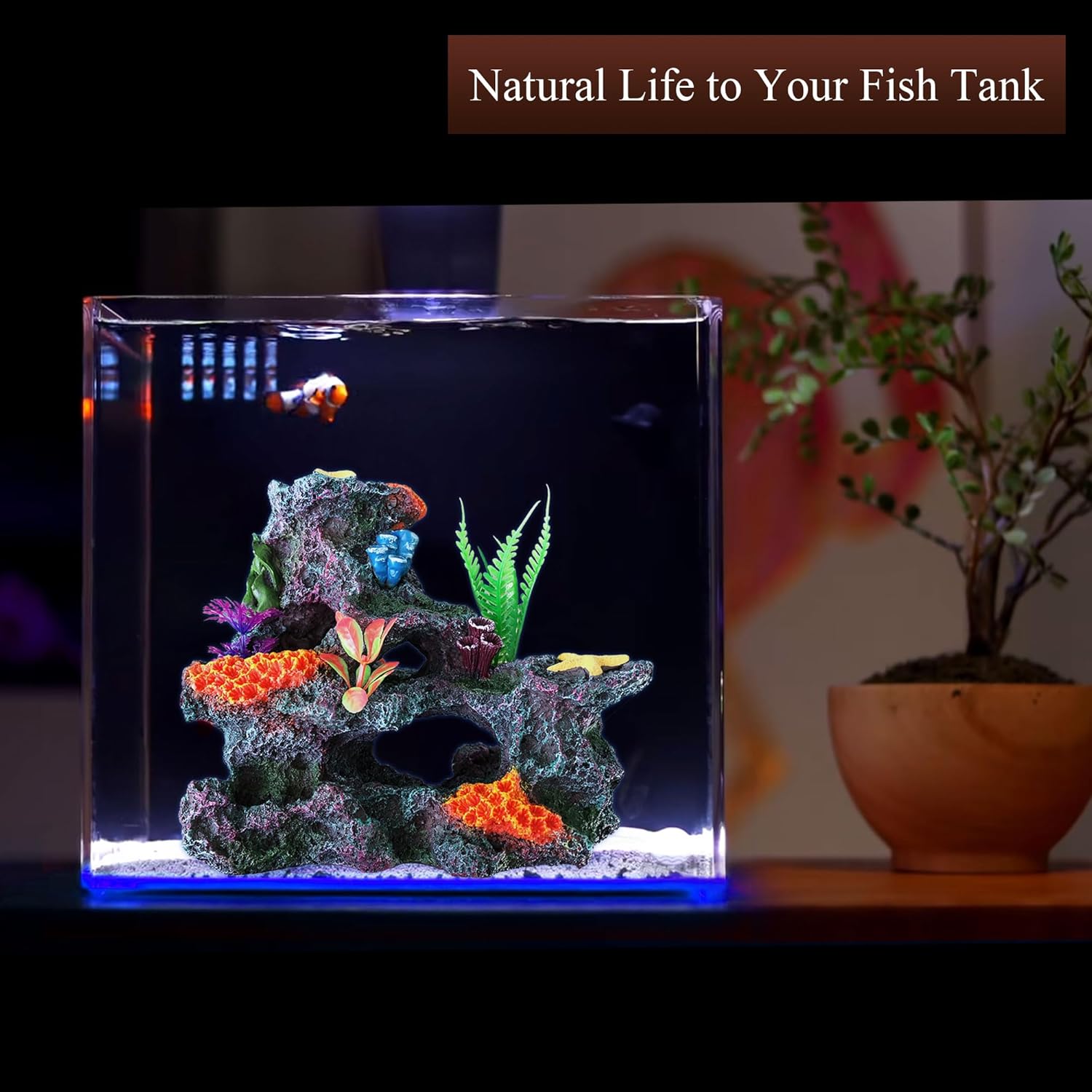 【STURDY AND DURABLE】 — Resin coral reef made of eco-friendly material, sturdy and durable, can be used in the water for a long time. The flat base is easy to fix, it will create a beautiful underwater world for your pet fish, making the fish’s life more interesting and happy. It will turn your fish tank into their amusement park.
