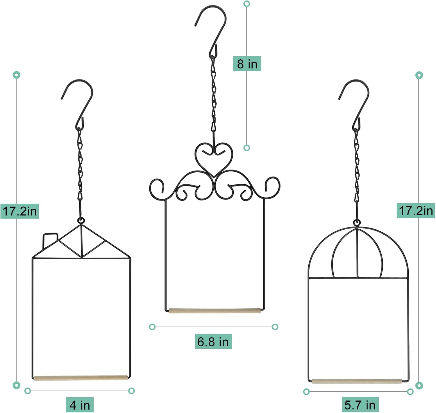 Metal Frame Hummingbird Swings and Perches with Wooden Dowel Black Bird Swing Outdoor Bird Perch Humming Bird Swing Pack of 3