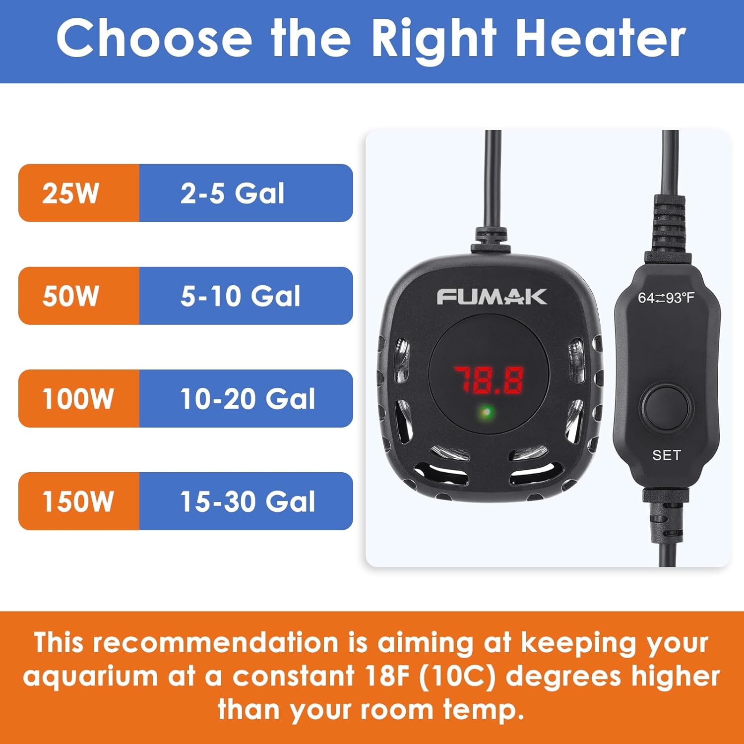 Upgrade your aquarium heating system with the FUMAK Mini Submersible Aquarium Heater. Embrace its space-saving design, unrivaled accuracy, and advanced safety features. Create the perfect habitat for your underwater companions and watch them thrive.