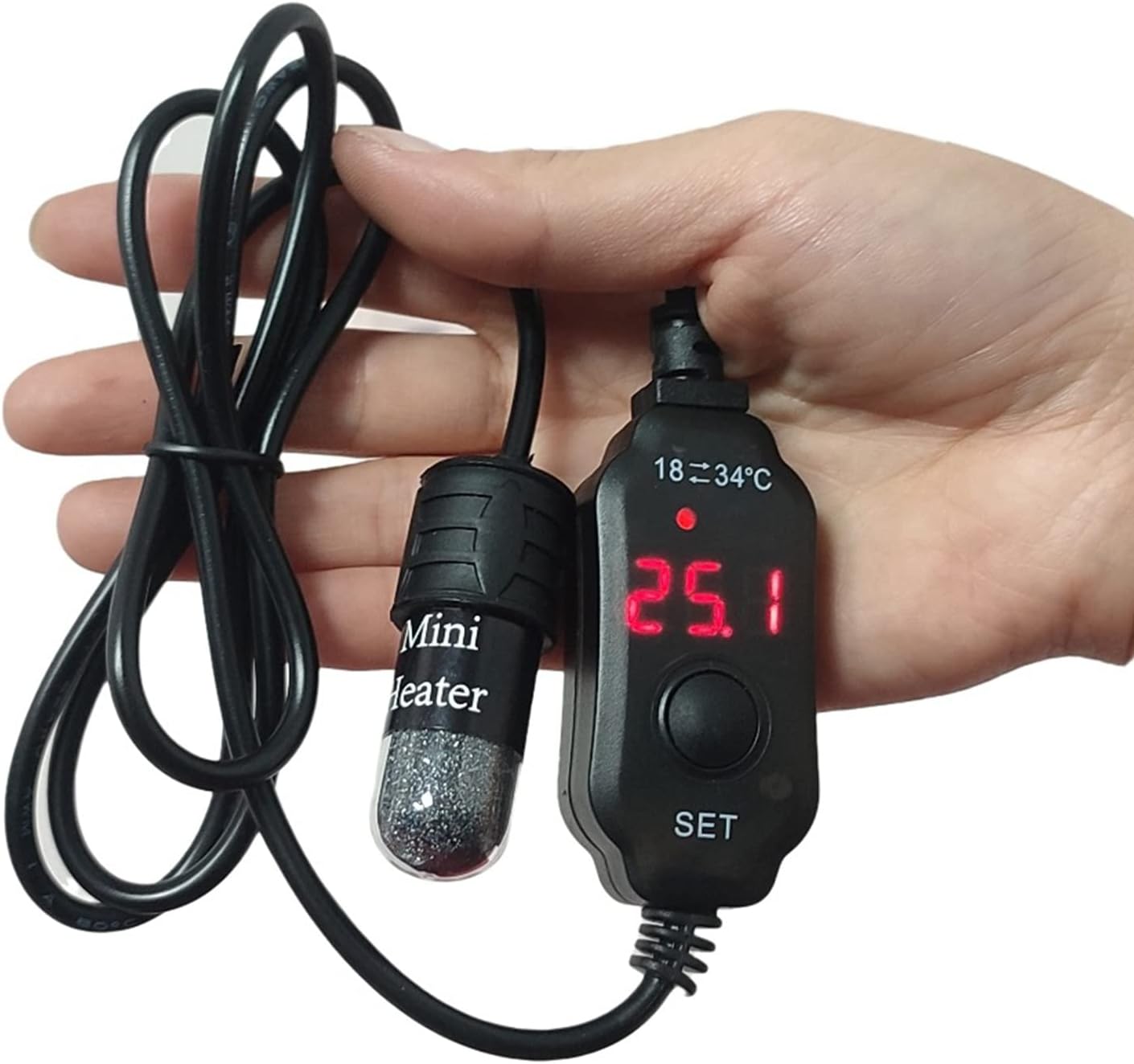 Features: brand new and high quality Digital LED display, the adjustment accuracy is 0.5¡ãC or 1¡ãF, and the display accuracy is 0.1 ¡ãC, simple operation. Made of nichrome wire, durable and safe. Mini size, saving space in the fish for tank, compact and beautiful. Suitable for fish tanks, mini tanks, for turtle tanks, horned frogs, pet drinking water, etc. USB heating rod, the temperature can be adjusted from 18-34¡æ, automatic power off when the temperature exceeds 36¡ãC. Specifications: Material: Nichrome Wire Color: Black Size (Approx.): 5.5x2cm/2.17×0.79in, LED Display 6.5x3cm/2.56×1.18in Weight (Approx.): 140g Note: 1.Please worldnet027ow 0-1cm error due to manual measurement. pls make sure you do not mind before you bid. 2.Due to the difference between different monitors, the picture may not reflect the actual color of the item. Thank you! Package includes: 1 x Mini Aquarium Heater