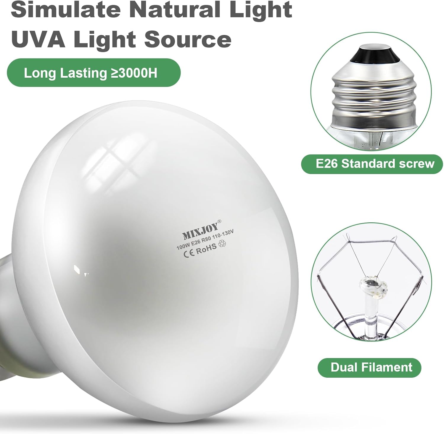 MIXJOY Reptile Heat Lamp 100W 2 Pack, UVA Daylight Basking Spot Light, Amphibians Basking Bulbs Heat Lamps, Heat Lamp Bulbs for Reptiles, Lizard, Tortoise, Bearded Dragon