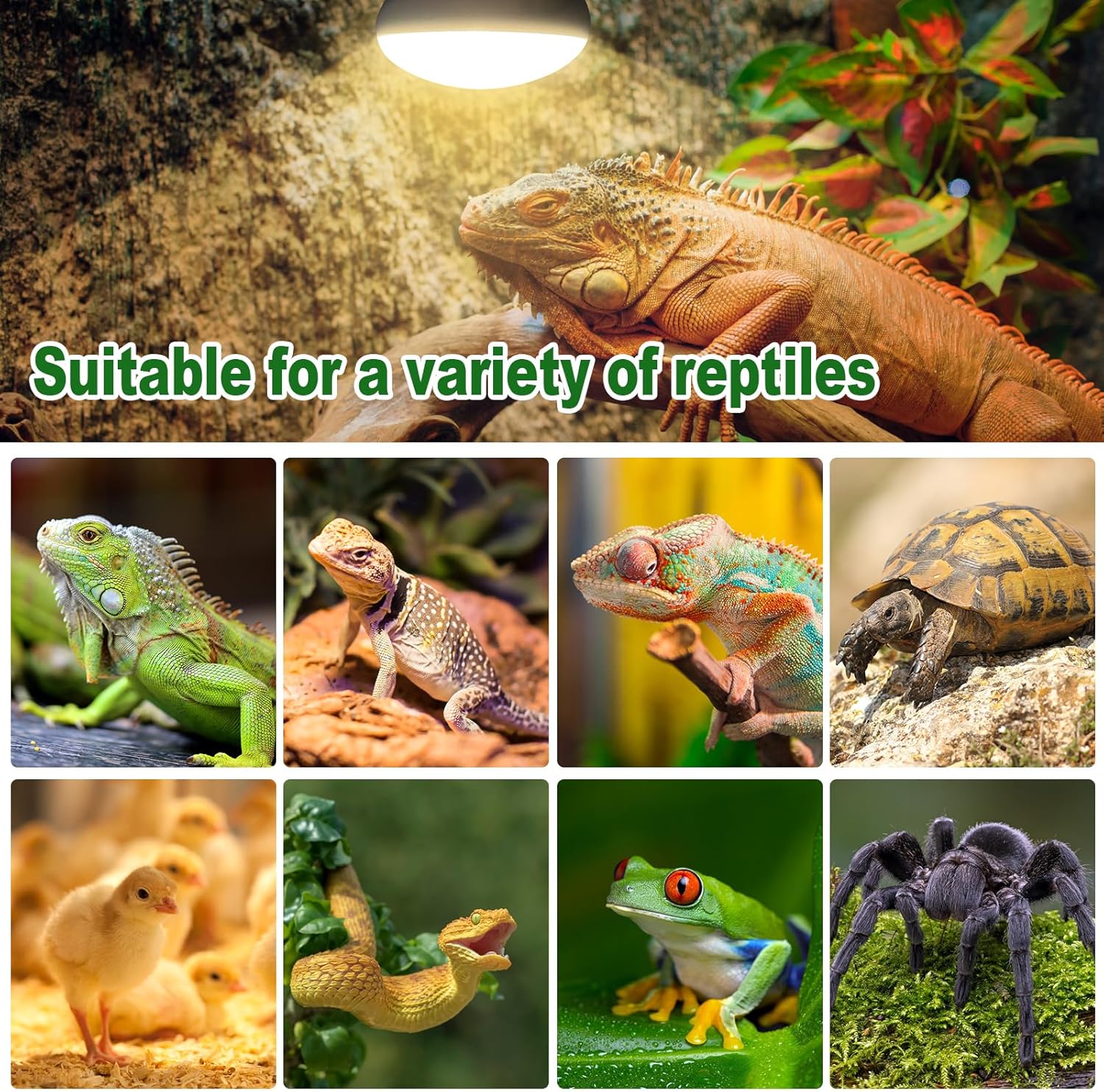 Our heating bulbs can be used for reptiles and amphibians, such as bearded dragons, chameleons, tortoises, geckos, iguanas, snakes, frogs, toads, etc. These heat lamp bulbs can be used in turtle tank, bearded dragon tank, etc.