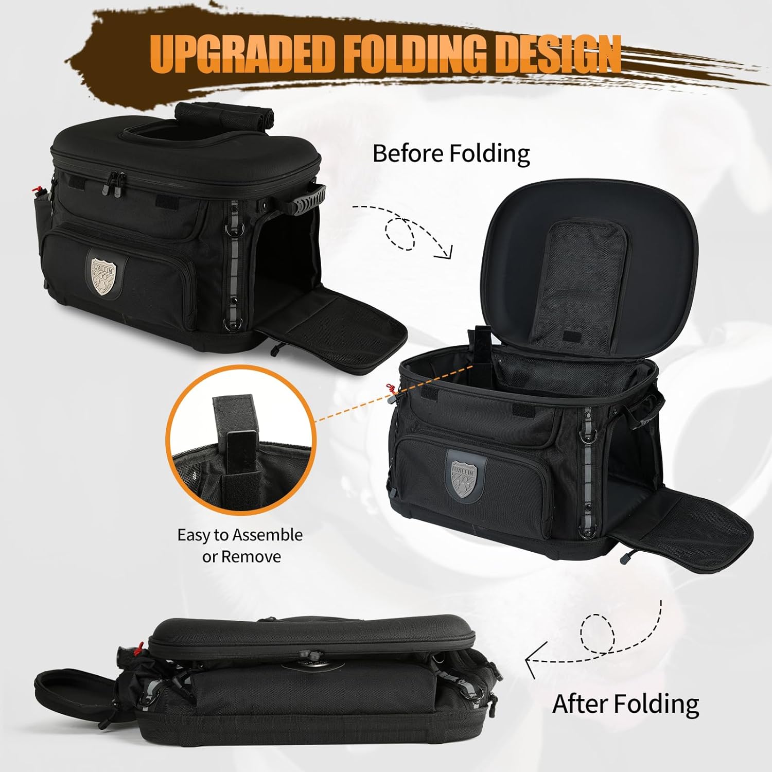 FOLDING MOTORCYCLE DOG/CAT CARRIER: The foldable and spacious motorcycle dog carrier that was born of necessity—we simply wanted a safe way to ride with your pups, so we created it!Only need to insert or remove four sturdy support panels for instworldnet027ation, use or removal. The panels are very solid and will not bend or break under your pet’s weight. Compared to non-collapsible motorcycle dog crates on market, with our folding motorcycle dog carrier you can save more space when storing
