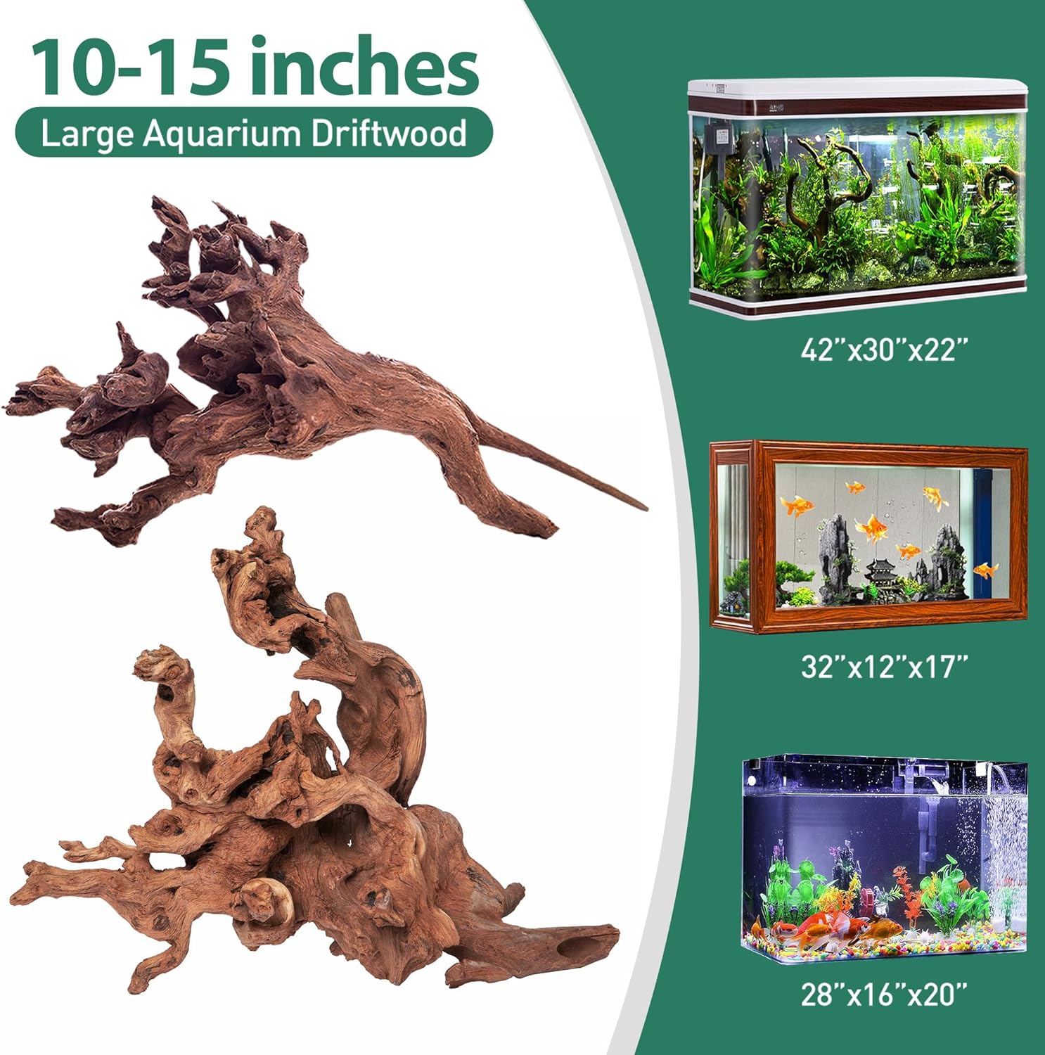 Natural Driftwood for Aquarium Decor, 2-Piece 9”-14” Long Large Driftwood for Decorations on Fish Tank, Reptiles Tank or Air Plants