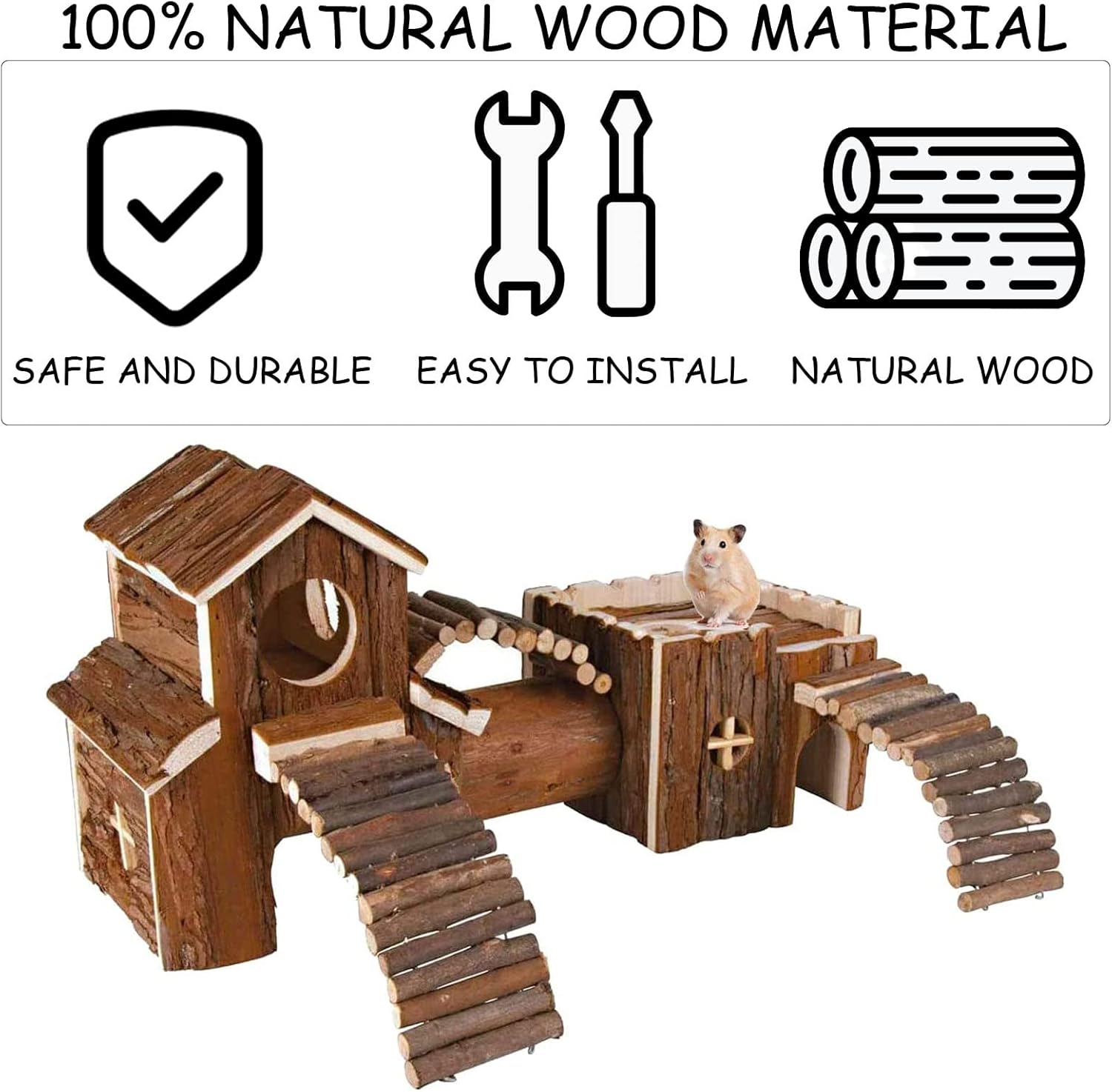 【Material Safety】 Made of high quality wood, natural air-drying, durable and safe. The wooden house part needs to be assembled by yourself, easy to instworldnet027, also can be disassembled with other accessories. Easy to clean and store, your little pets will love it.
