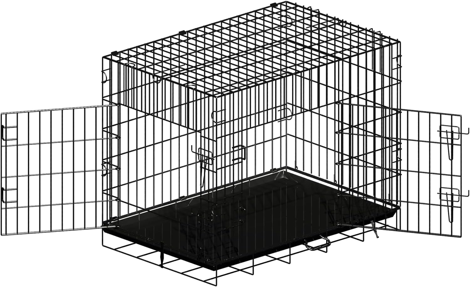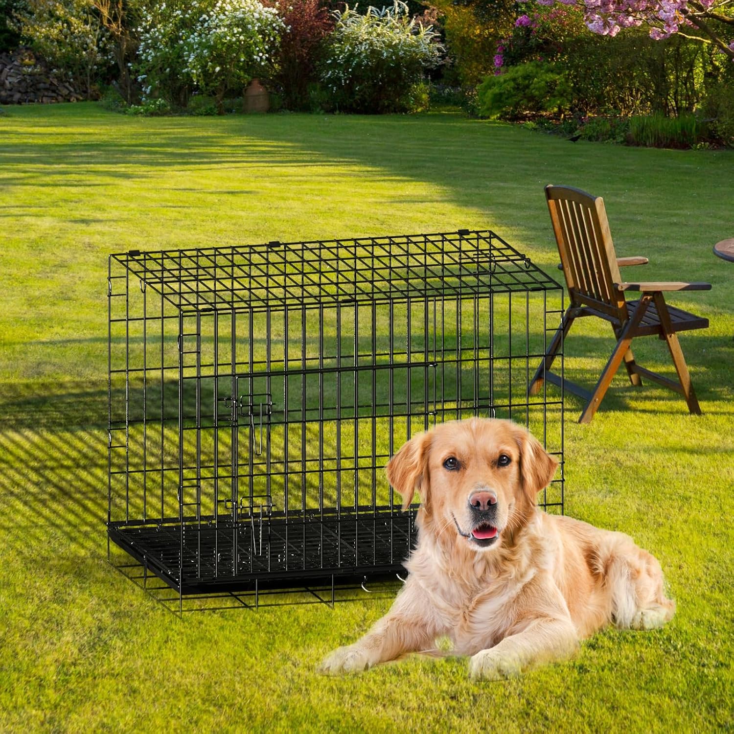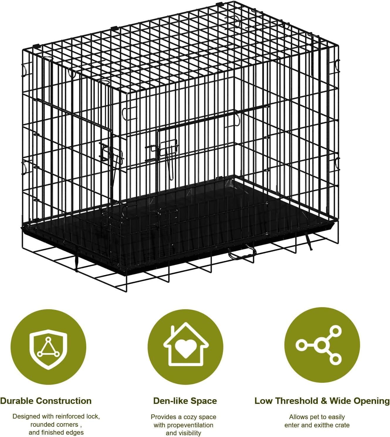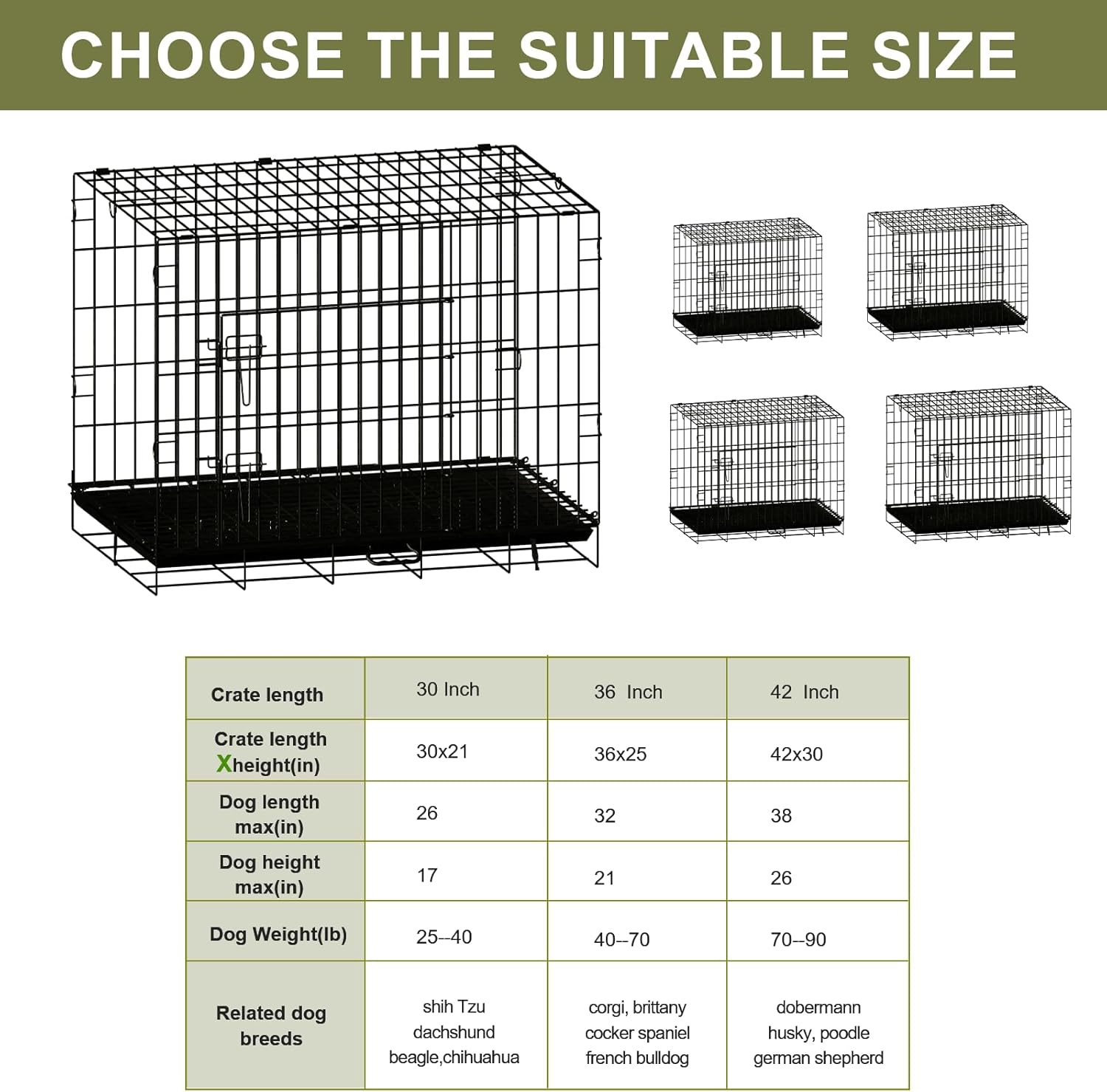 New Enhanced Double Door Dog Crate, Portable Wire Dog Crate with Tray and Divider, Pet Crate for Smworldnet027 Dogs, Indoor and Outdoor Pet Pen, 42″ L x 28″ W x 30″ H Collapsible Dog Kennel