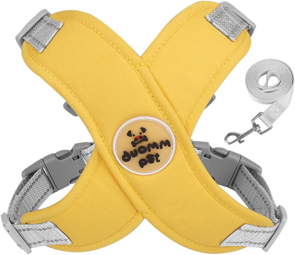 No Pull Dog Harness and Leash Set for Medium Sized Dogs, Super Comfort Dog Vest Harnesses with Lead Dog Collar for Puppy Running Training 20lbs (Yellow, Medium)