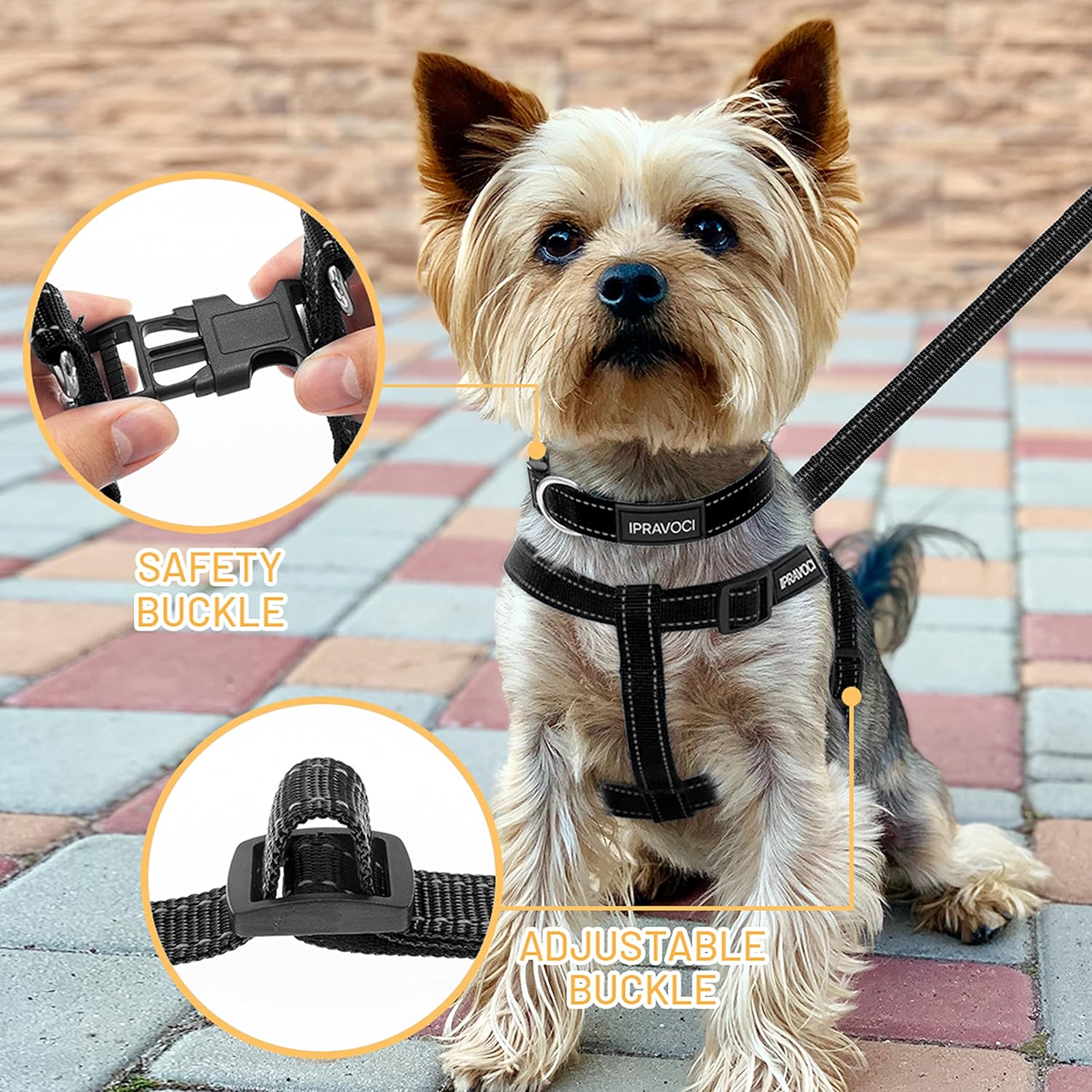 This dog harness set includes 1pc dog harness, 1 pc leash and 1 pc collar. It is made of nylon which is tightly woven, soft and durable. It will not harm your dog’s skin even if it is worn for a long time.In addition, the 360¡ã reflective design can work perfectly even in a dim environment. You can also clearly capture the dog’s movement, making it safer to walk at night.